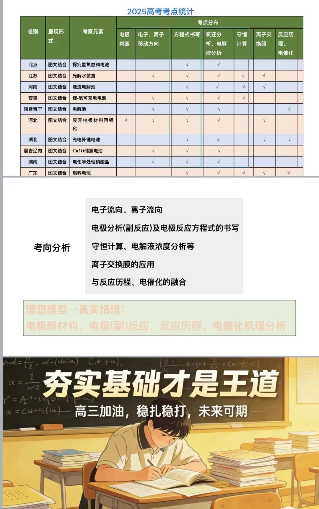 课堂主要内容:高一讲授无机非金属材料,结合实物感知材料特性;高三开展电化学专题复习,梳理装置类型、构建解题模型,衔接教材与工业实际。