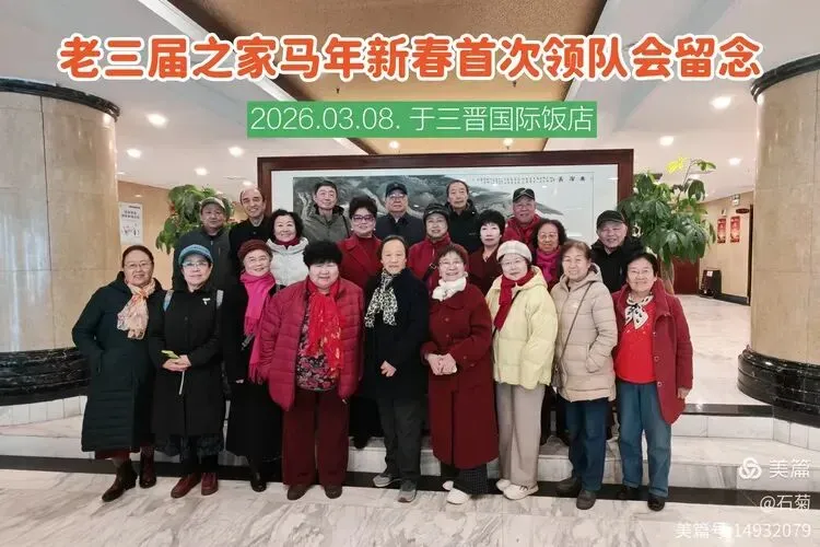 2026年3月8日上午,三晋国际饭店暖意融融,气氛热烈而庄重。太原《老三届之家》领队会议如期召开,来自全市各老三届艺术团队的21位负责人齐聚一堂,共商2026年度文化活动大计,以赤诚与热忱续写不老的青春华章。作为太师挚友艺术总团负责人,我带领合唱团、模特团、舞蹈团、朗诵社的六名领导参会,与各兄弟团队同仁并肩携手,共话传承、共谋发展。