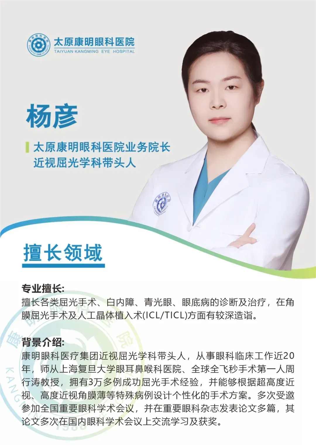 服务全程可溯:从术前咨询、检查,到术中操作、术后随访,全程建立完善的诊疗档案,医护人员耐心解答患者疑问,主动告知诊疗流程、注意事项及费用明细,让患者全程掌握自身诊疗情况,放心就医。医疗的诚信,始于专业,成于坚守。太原康明眼科深知,一支高素质的专家团队,是诚信医疗的核心支撑。医院汇聚了一批国内知名眼科专家,组建了一支涵盖近视矫正、白内障、眼底病等多领域的资深诊疗团队,用精湛医术和责任担当,守护每一位患者的“视界”希望。