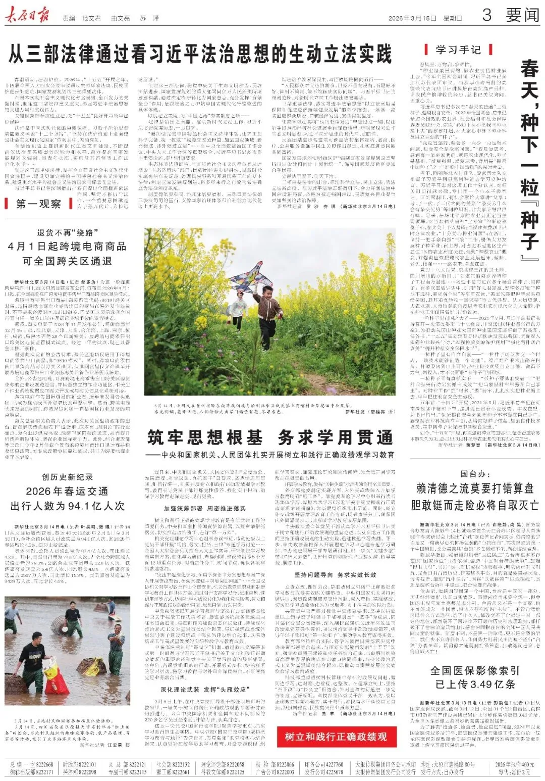 ▶《太原日报》2026年3月14日版面速览