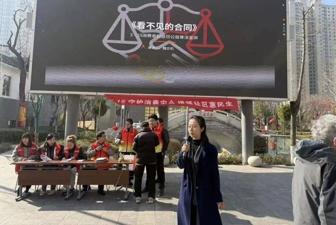 3月15日,我所律师走进小井峪文化产业园,开展“3·15守护消费安全,情暖社区惠民生”主题活动。由魏志如律师带队授课,李荣基律师、郭耀慧律师等队员参与,魏志如律师围绕日常消费场景以案释法,讲解《消费者权益保护法》相关知识,重点剖析消费热点问题,传授识假辨假、维权方法及投诉渠道,普法小队面对面为居民答疑解惑,指导群众依法维权,用专业与热情为社区居民消费安全保驾护航。