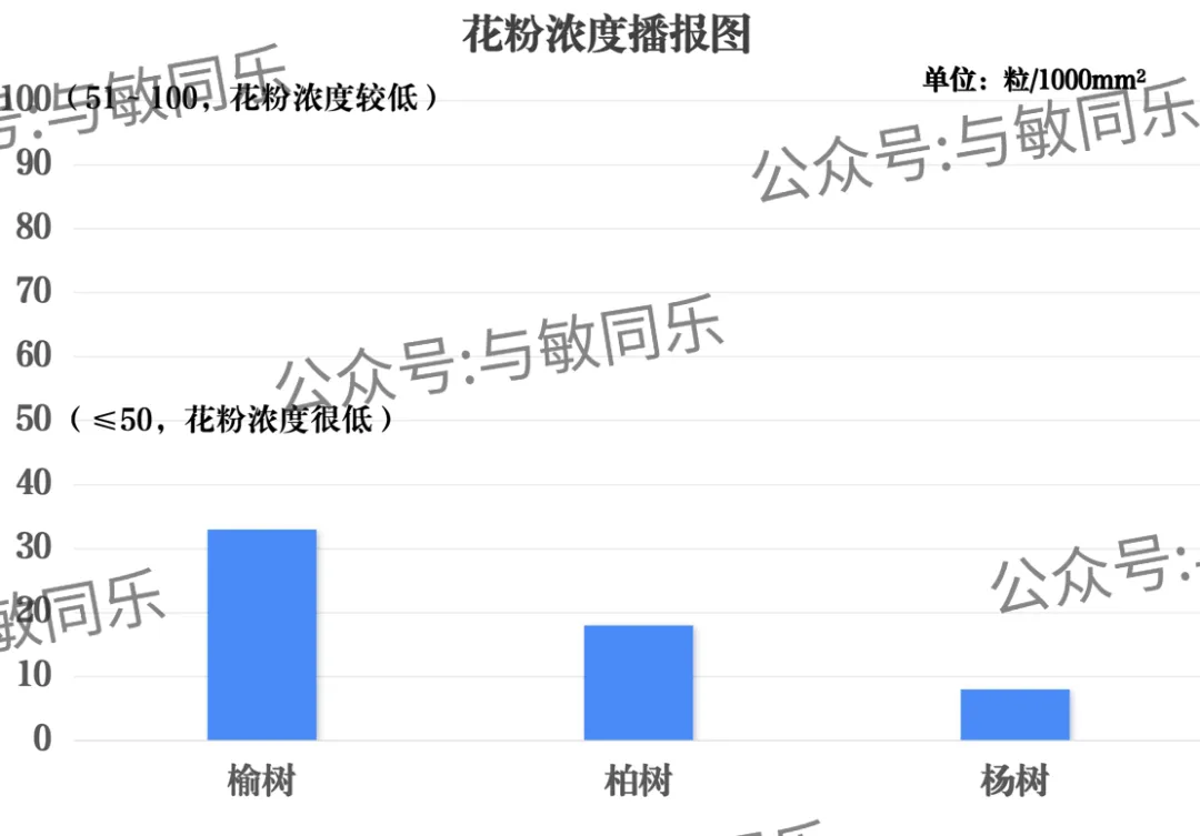 气传致敏花粉种类包括:榆树、柏树、杨树等;