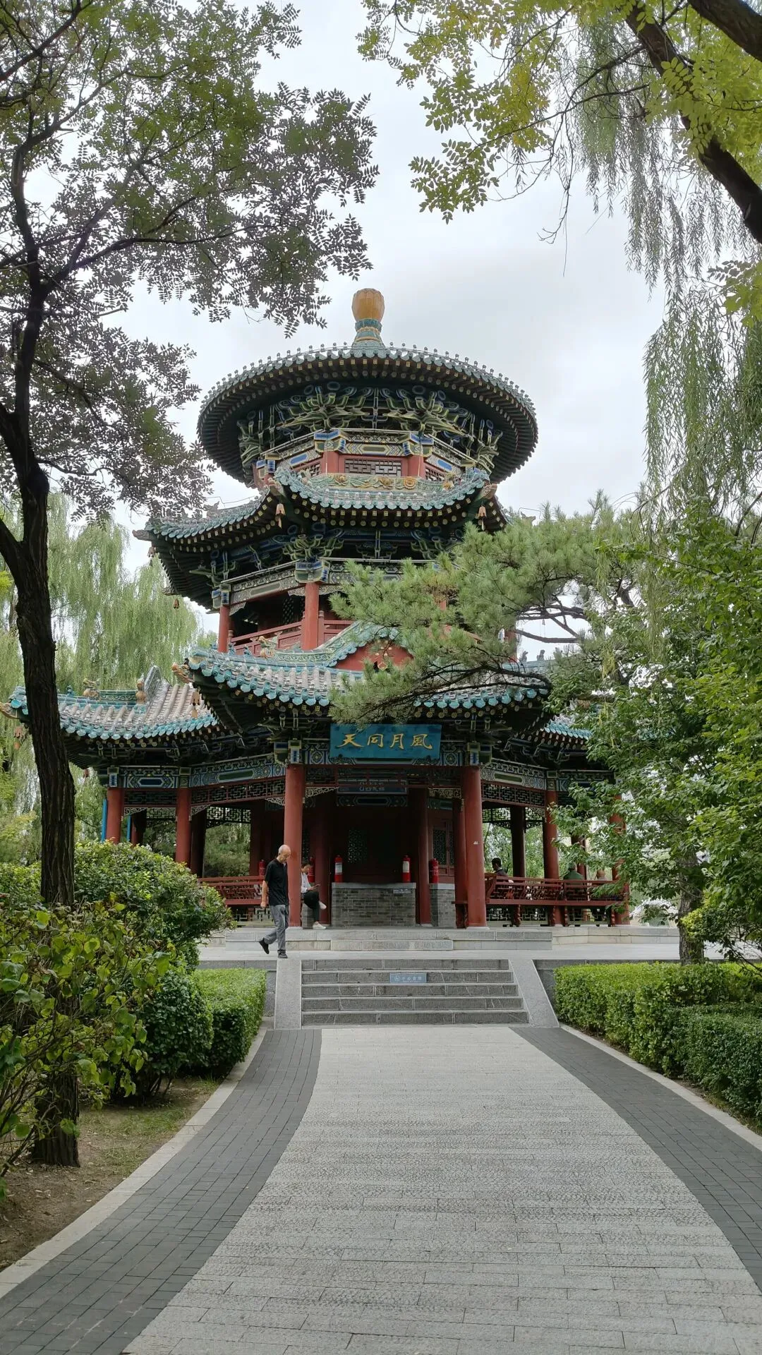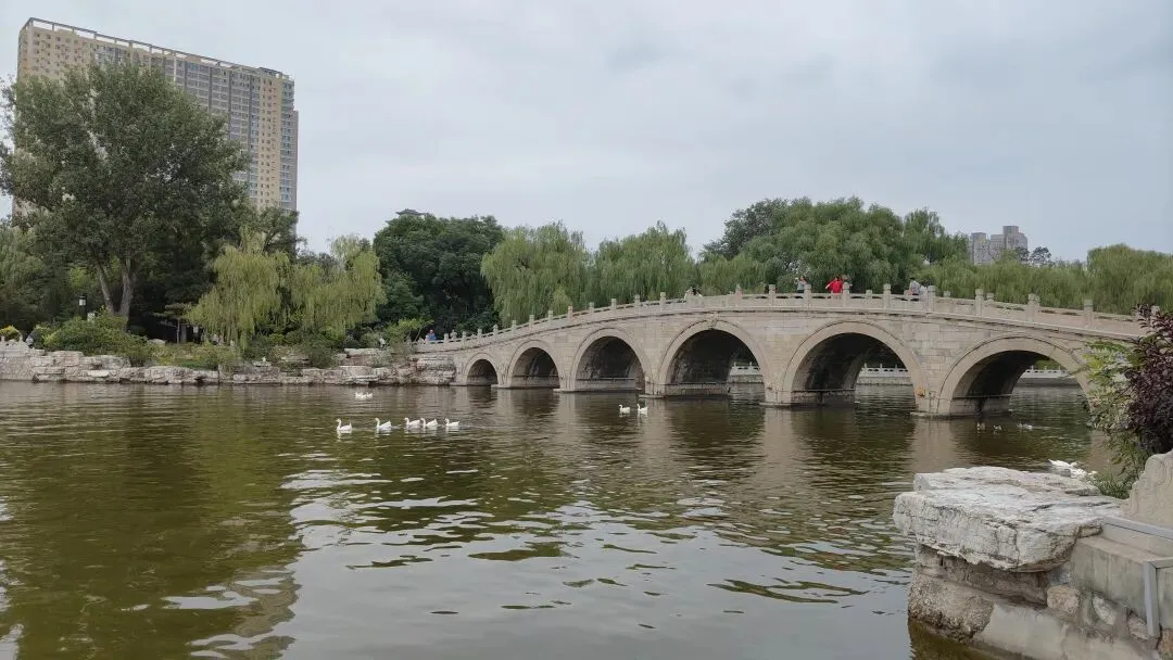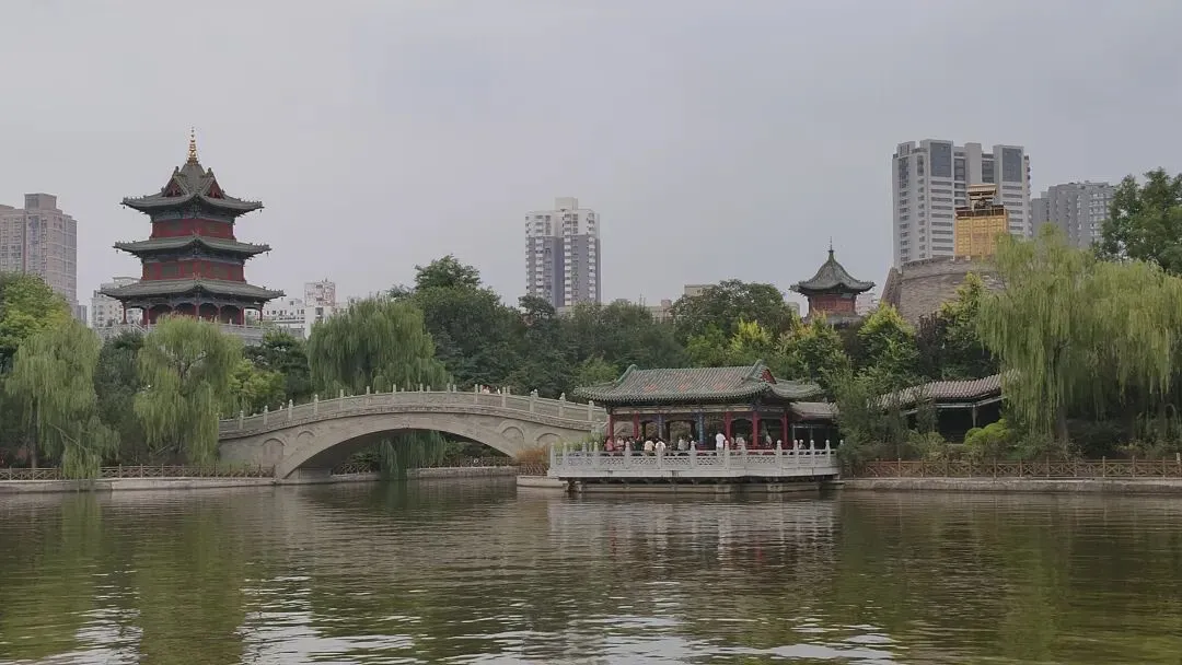 第七天,因连续多日的舟车劳顿,打卡式的走了比较多的景区,感觉比较累。所以,在酒店吃完自助早餐后,回房间就泡着茶看着电视节目,休整了半天。到了中午时分,步行到附近的钟楼街,在六合居餐厅吃了排骨面和烧饼。回来午睡一会儿,下午才坐着公交车到迎泽公园。公园的面积还蛮大的,沿着迎泽湖的湖边闲逛了一大圈。公园里面有多座楼阁,是多角圆顶和四面三层为主,其中有藏经楼、望远阁,外观为朱红色。这个公园的景观还是不错的,有水有桥,有休息廊亭,是个放松休闲的好地方。