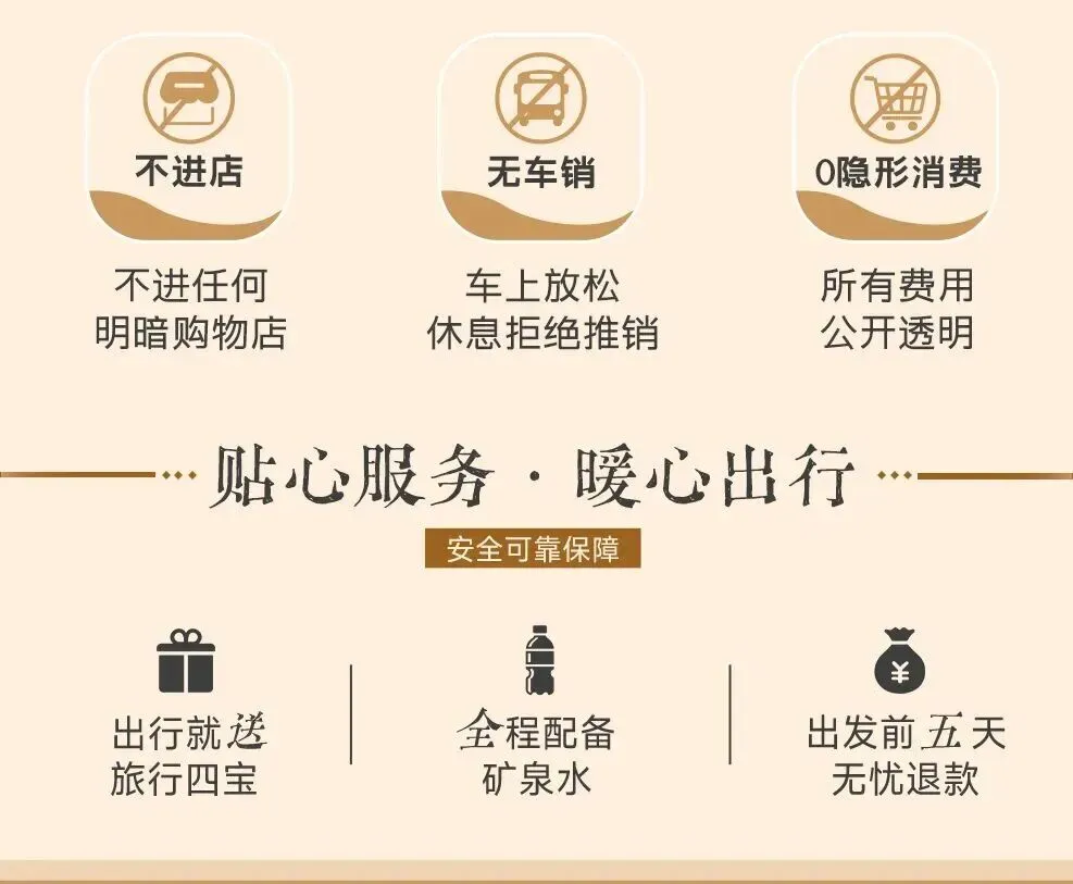 备注:跨五一和国庆、含五一和国庆的团期,不支持中途退团,若中途退团,不退任何费用。
