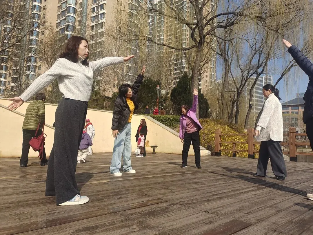 阳光洒在肩头,阳气充盈周身,动起来的每一刻都充满生机。大家在公园的春光里舒展筋骨、释放活力,既练出了好状态,也收获了同伴情,更把“动则生阳、亲近自然”的健康理念深植心间。