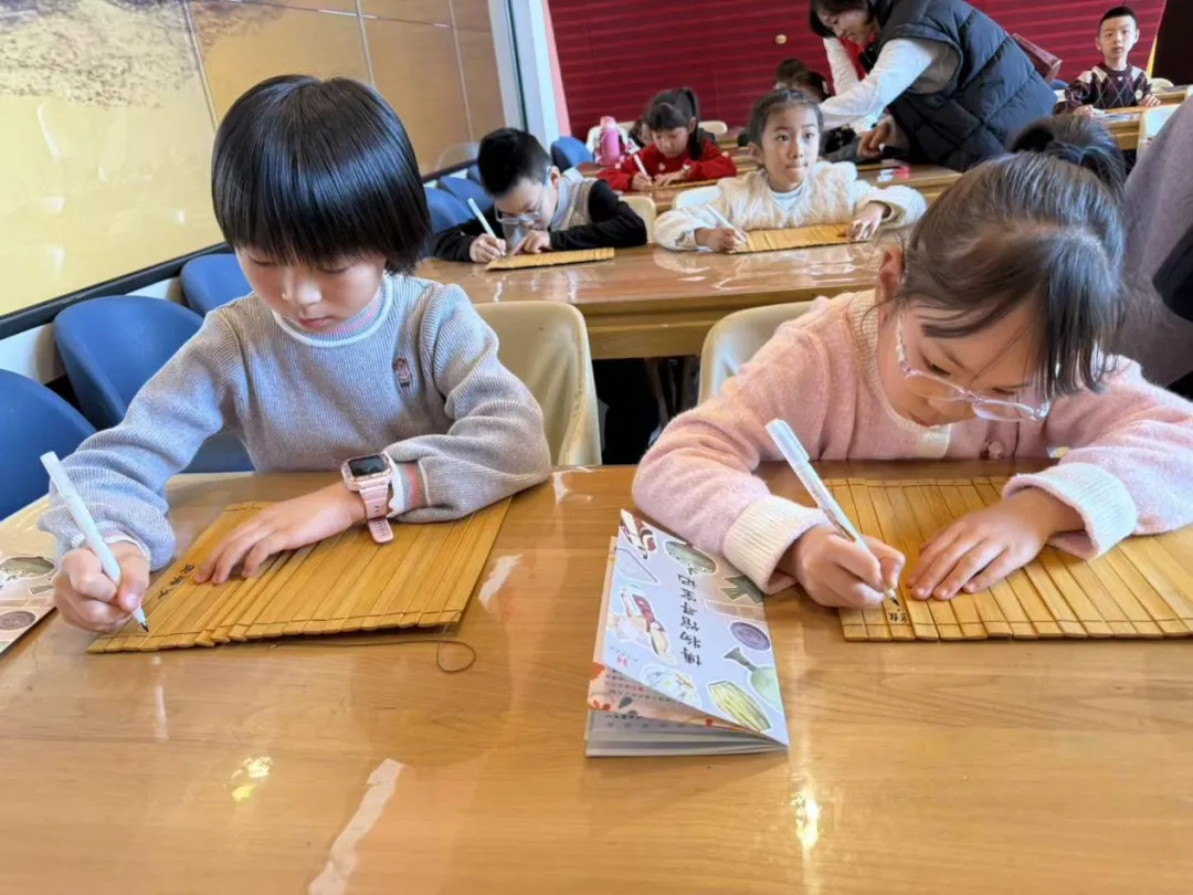 凤通社(吉康)2026年3月16日讯:3月15日,太原市博物馆依托基本陈列“锦绣太原历史文化展”开展的月度主题研学活动如期举行,本期以“代国春秋”为主题,带领孩子们走进展厅第二部分“黄云画角见并州”,探寻并州古史。恰逢3月13日赵国柱先生书法巨作《太原赋》正式入藏馆内,研学活动中,孩子们以竹简书写《太原赋》,让千年并州文脉在古今交融的沉浸式体验中代代相传。
