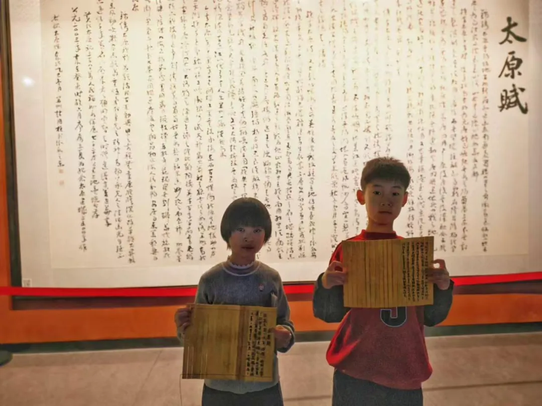 3月13日,太原市博物馆刚迎来赵国柱先生捐赠的书法巨作《太原赋》,这件笔力遒劲、气势恢宏的作品正式入藏并将长期陈列于“锦绣太原历史文化展”第五部分“地贵自然芝草出”展厅,为馆内增添了彰显太原文脉的艺术瑰宝。《太原赋》作为宣传太原城市形象的经典文本,全景式展现了太原的古今风貌,此次孩子们以竹简书写这一经典,既是对传统书写文化的传承,更是对太原本土历史文脉的鲜活诠释。
