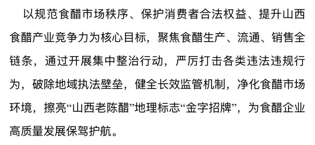 强调,擦亮“山西老陈醋”地理标志“金字招牌”,为食醋企业高质量发展保驾护航。
