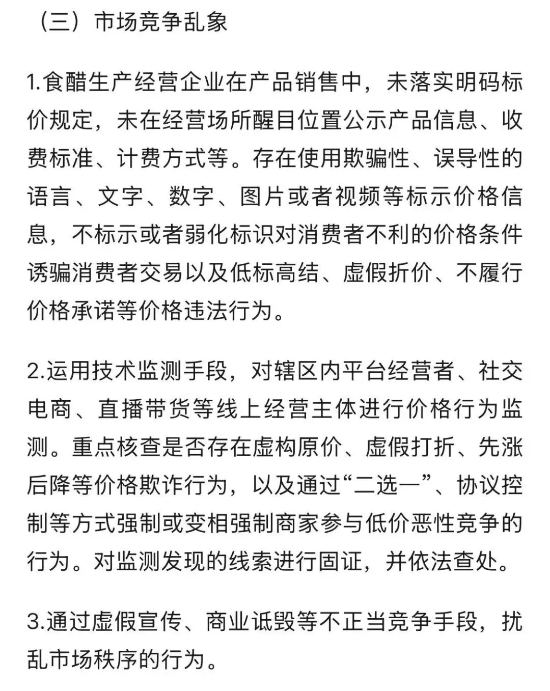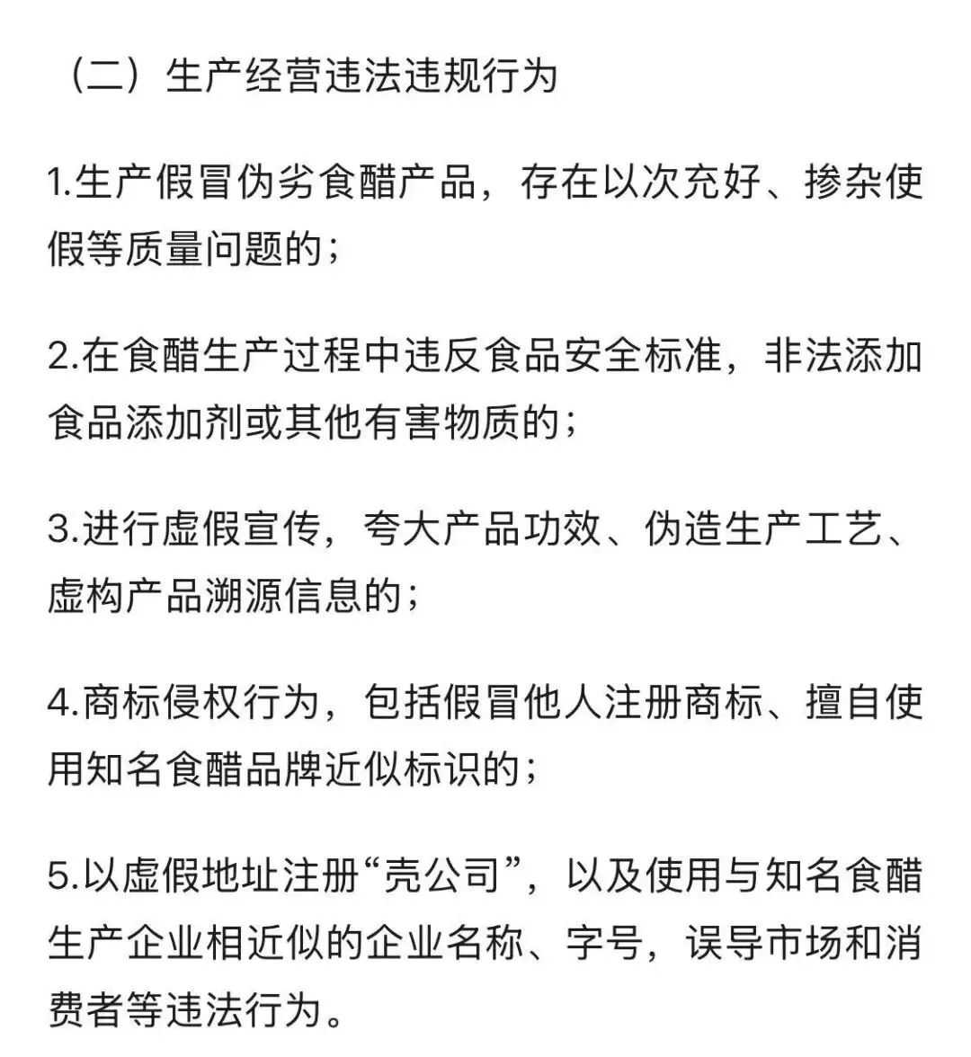 推动经营主体自查自纠:重点排查所售食醋产品的资质合规性、标识准确性等;督促经营主体建立健全进货查验、索证索票制度,完善产品质量追溯体系,对排查发现的侵权、不合格食醋产品立即下架退市,从销售端阻断违法违规行为传播路径。