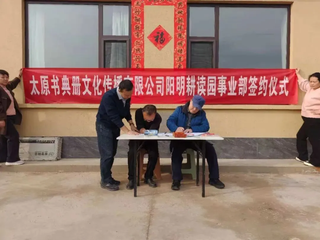 ——太原书典册文化传播有限公司阳明耕读园事业部正式成立 本报讯 春和景明,文脉赓续。2026年3月15日下午,太原书典册文化传播有限公司阳明耕读园事业部签约仪式在山西长治沁县倪村“北方龙场”文化基地隆重举行。原中共沁县县委党校副校长李灵秀、原畜牧局局长李儒红、县书法协会秘书长张一凯、北京大学山西校友会书画院院长李戬兰女士、倪村原党支部书记杨国芳,中国实学学会管理哲学专业委员会副秘书长李安博士及夫人刘芳女士,与项目核心团队共同见证签约,标志着长治市沁县与山西大学乡村振兴研究院阳明耕读园课题组在推动中华优秀传统文化创造性转化、创新性发展方面迈出了坚实一步。