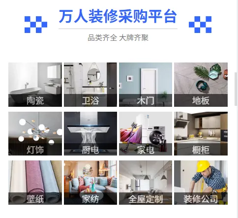 装修材料:涵盖瓷砖、地板、卫浴、门窗、涂料、壁纸等,满足不同装修风格需求。