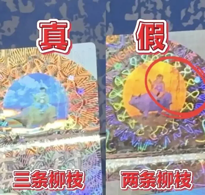 “真酒包装上的防伪标识,柳条是3条,而假酒的柳条只有2条,一眼就能分辨出来。我也是后来才知道这个区别,之前一直被商家蒙骗了。”