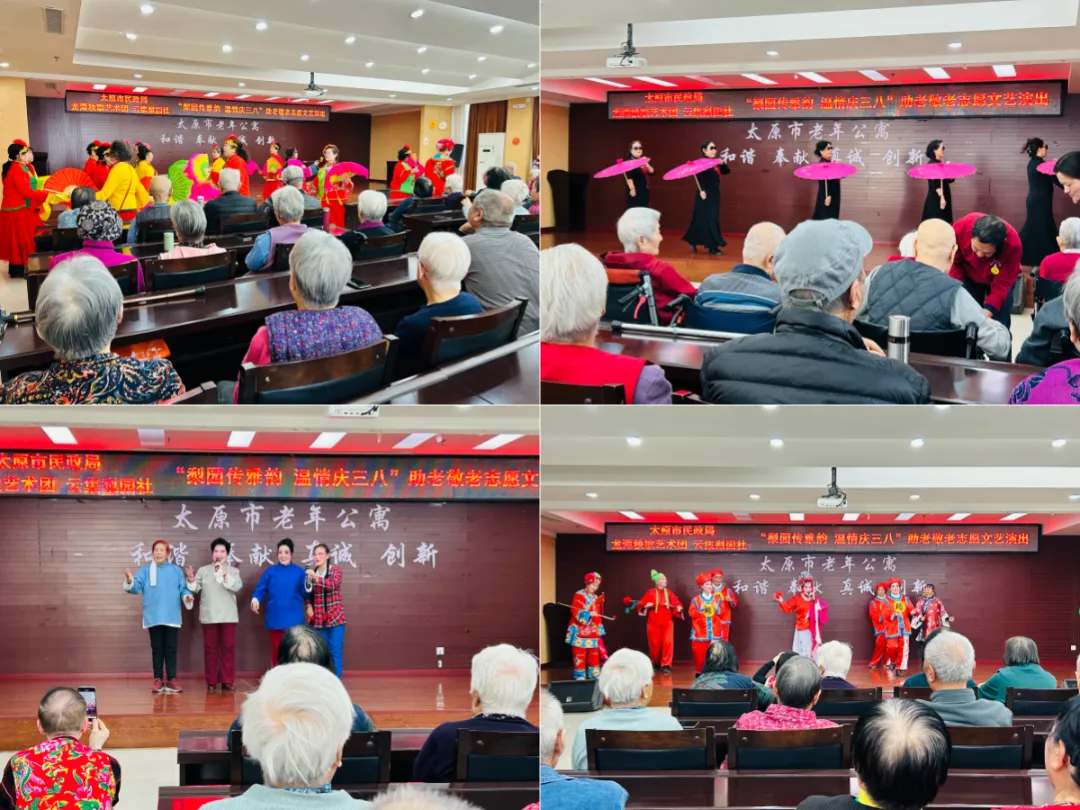 3月10日,我们携手太原市民政局、龙潭秧歌艺术团、云集梨园社开展“梨园传雅韵温情庆三八”助老敬老志愿文艺演出活动。以秧歌舞开场,戏曲经典选段轮番上演,唱腔优美、韵味十足,老人们听得津津有味、掌声不断,在浓郁的戏曲氛围中感受传统文化魅力与节日温情。