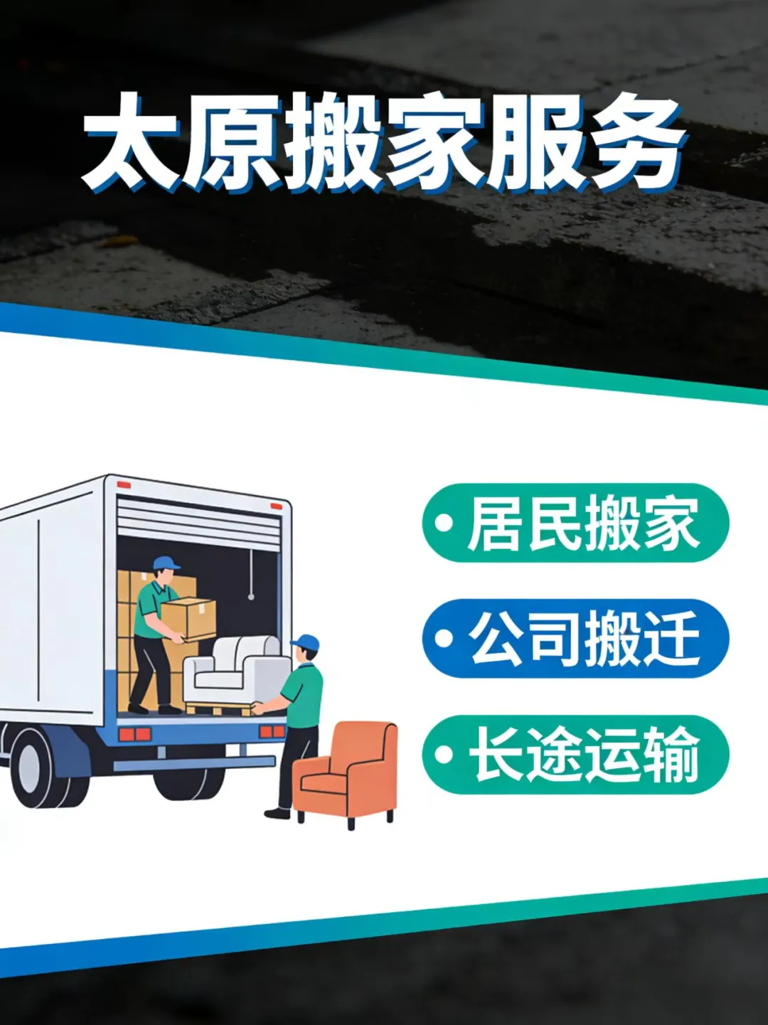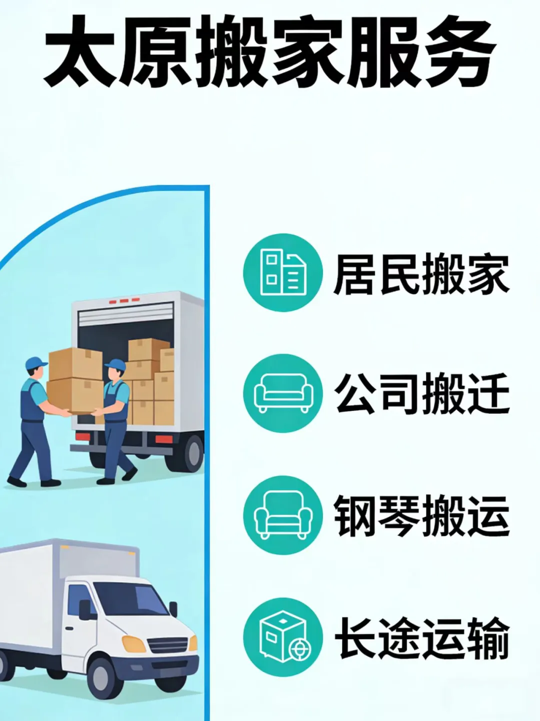 - 服务范围:居民搬家、企业搬迁、工厂设备、钢琴搬运、长短途运输。