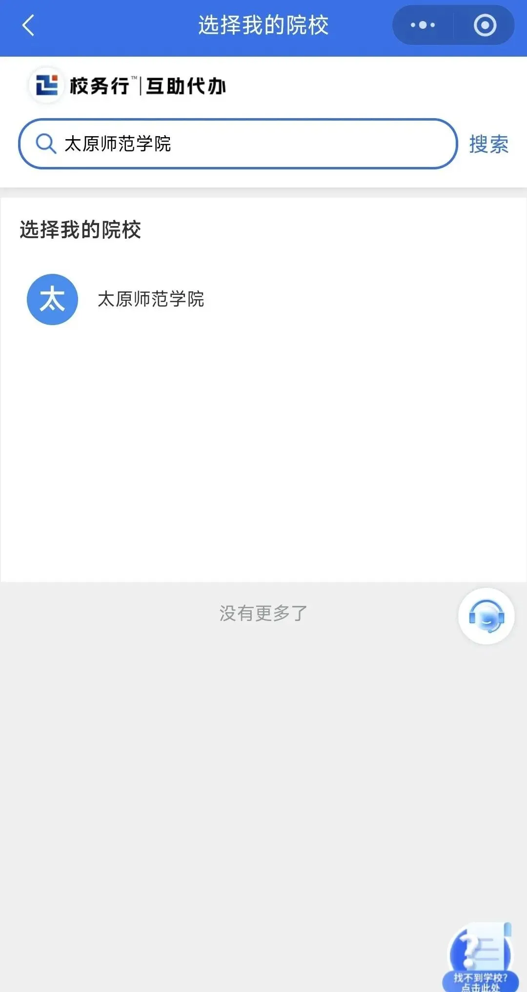 1. 进入后查看服务说明并勾选同意,然后选择“太原师范学院”。