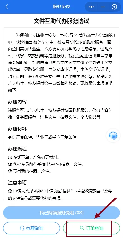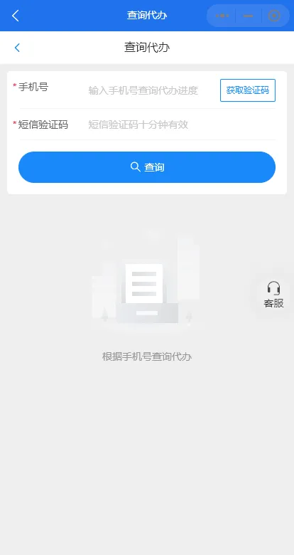 3. 提交代办需求后,可在进入页面点击[订单查询],输入手机号和验证码,实时查看进度,方便第一时间掌握办理情况。