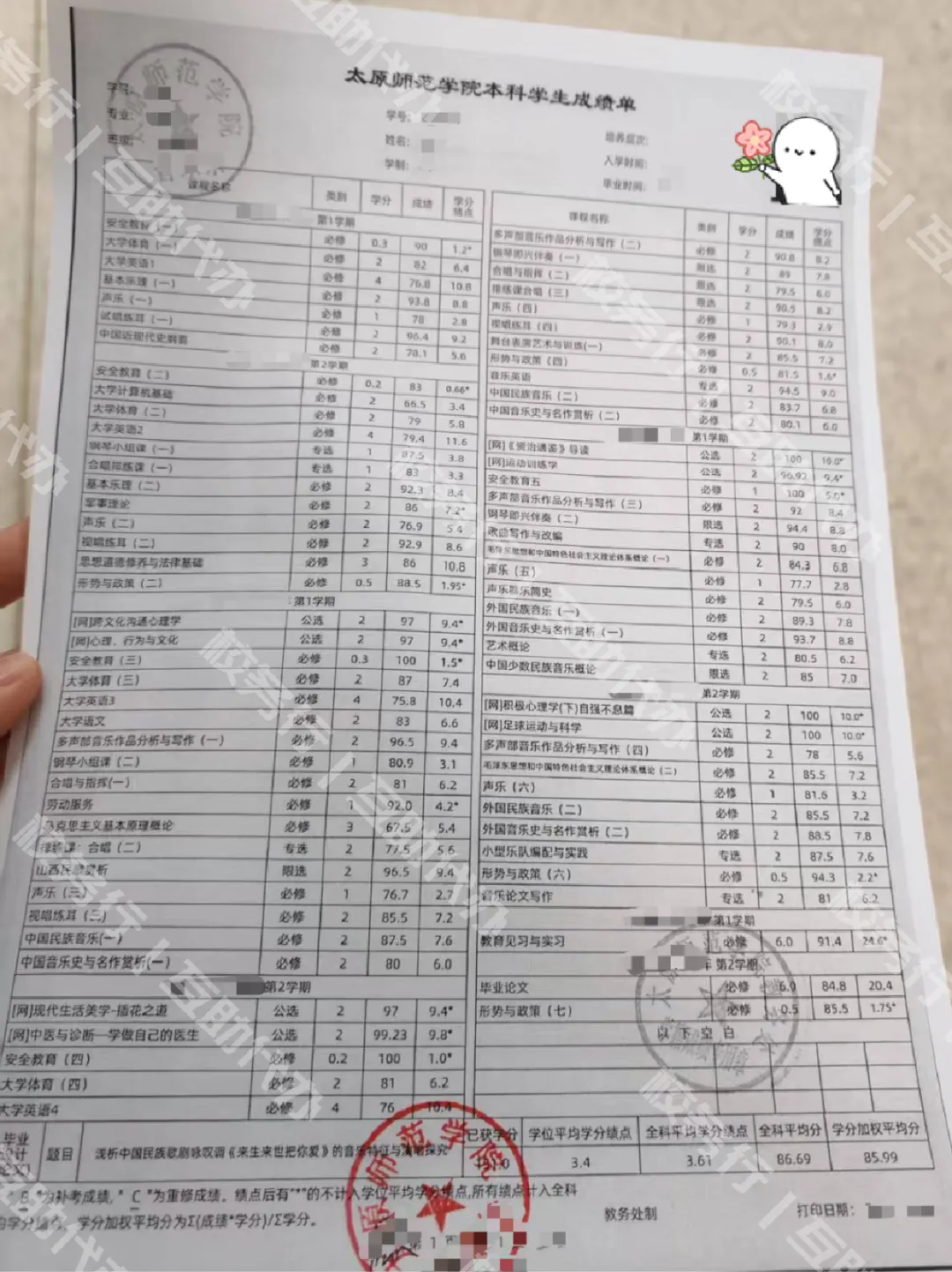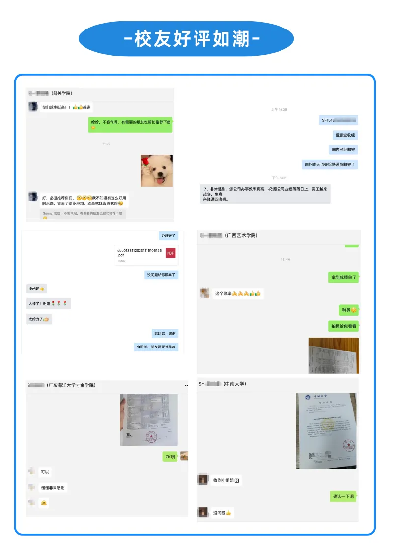 我们帮助了太原师范学院的许多应往届校友办理各类中英文成绩单、毕业证明、学位证明、均分证明等学籍材料,要求加盖院校鲜章,以及材料需放入信封密封加盖骑缝章的,校务行代办人员基本都在在2-3个工作日内取好盖章材料并寄出。