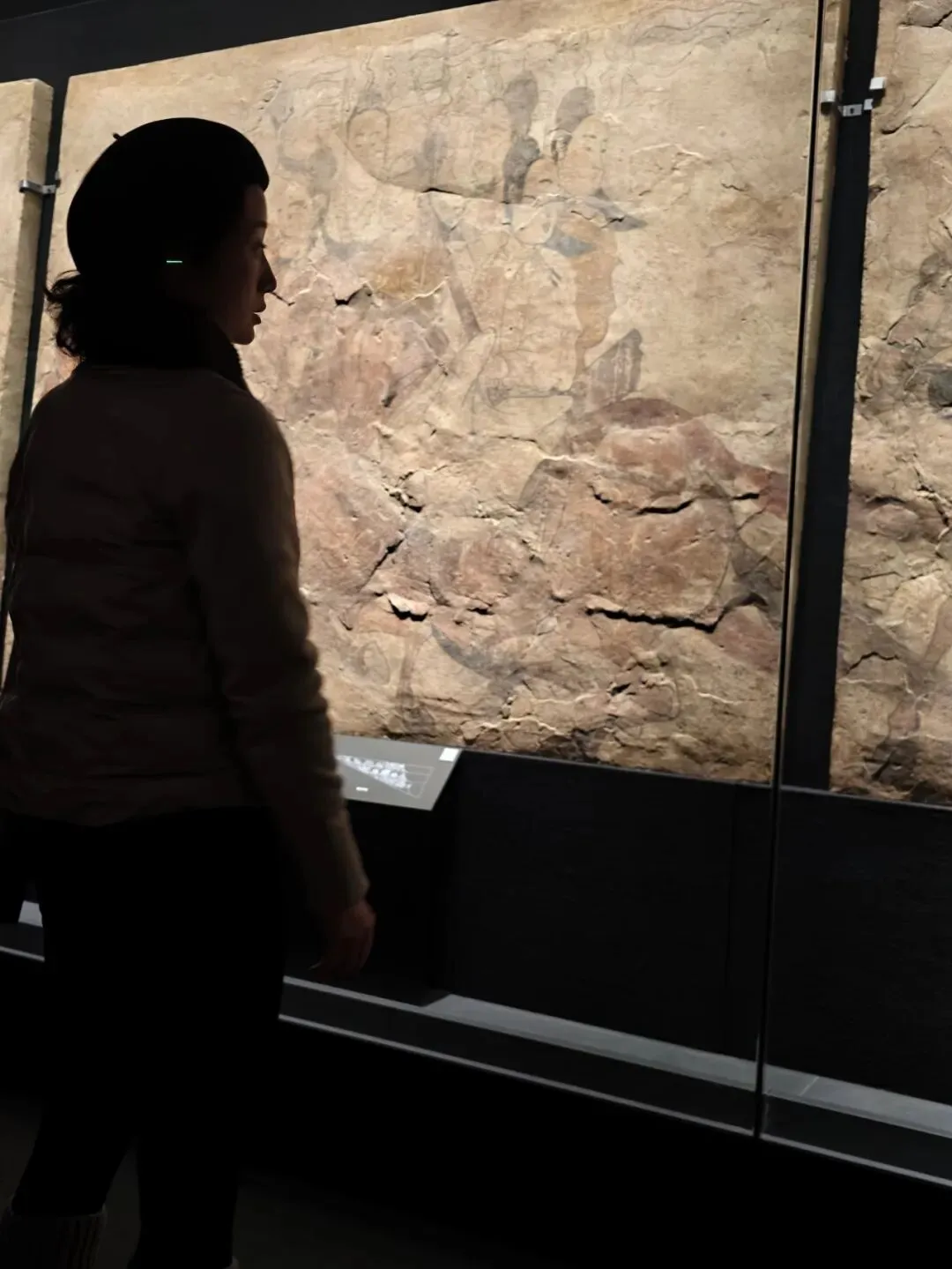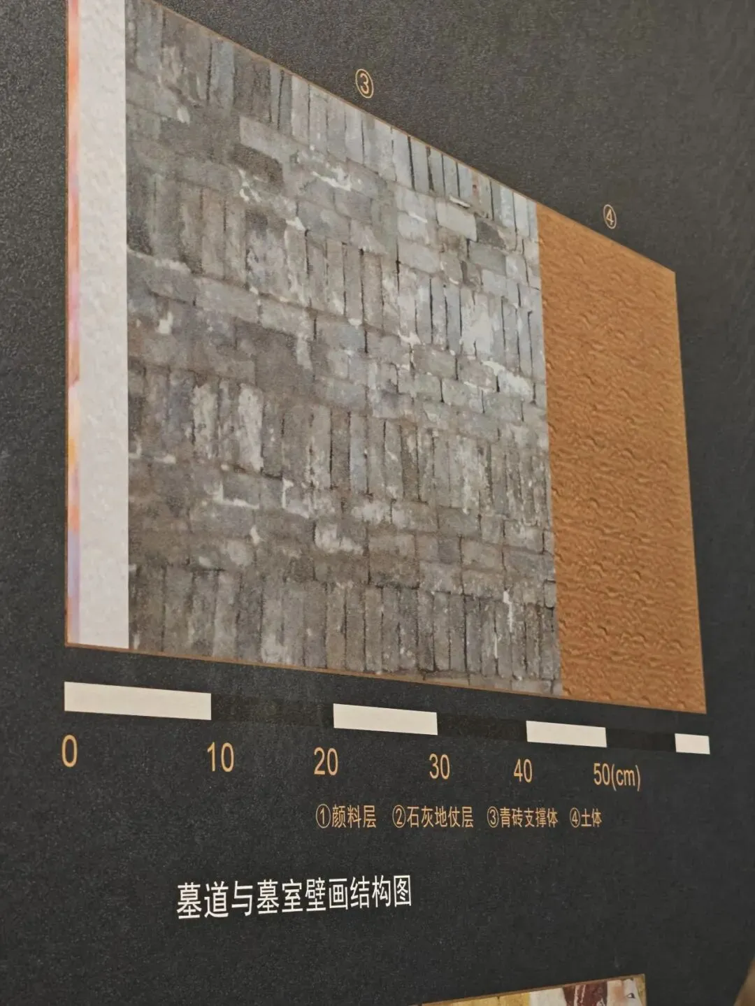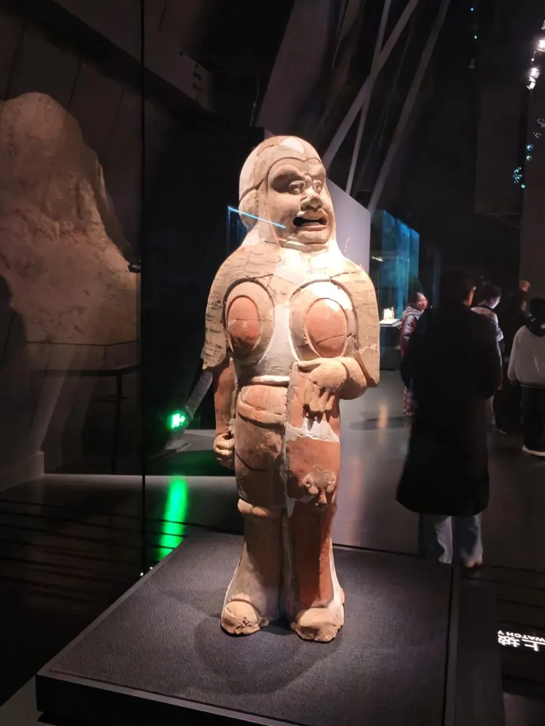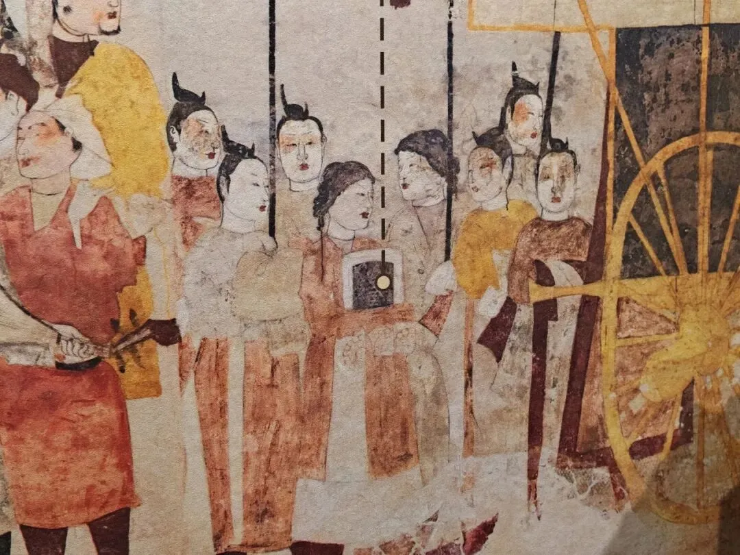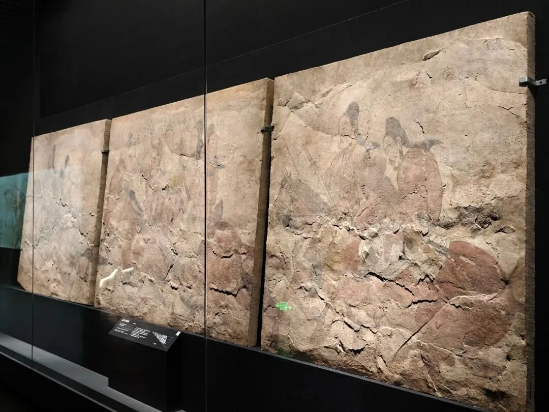 一进去就能看到这幅北齐太尉、武安王徐显秀墓门楼图,这是博物馆的唯一复制品,真品在山西博物院,在博物院的时候已经看到过这幅门楼图。总的来说这幅画还是有很多纰漏,技艺与现代相比也差别很大,比如门开的方向,透视比例不对,人物全部闭眼、手都在袖子里(眼睛、手不好画)。这只神鸟是《门楼图》的核心元素,它长着狮子的头、鸟的喙、龙的颈、白鹭的腿、鹰的爪和凤凰的尾羽,是多种瑞兽形象的融合体,昂首守护在门楼之上,象征着守护与祥瑞。上面这个网状的东西叫罘罳(fú sī),设在屋檐或窗上以防鸟雀的金属网或丝网。可见当时的画师是严格按照北齐建筑刻画出来的,这么细节的东西都画上了。娄睿是北齐东安王、鲜卑贵族,其姑母为北齐奠基人高欢的正妻,地位显赫。这幅画主体为鲜卑贵族骑队,具体位置是在墓道东西两壁,分上下两层,上层为骑队,下层为步行仪仗,展现贵族出行的盛大场面,分成了三块。特色之一:马拉粑粑,几个圆球从马屁股里掉下来,很少有人画图会把这么细节的地方画出来。特色之二:中间这幅图中间这匹马,双目炯炯,无论从哪个角度看都似在注视观者,被称为 “马娜丽莎”。这可是1450年前的画,比蒙娜丽莎早了不少。特色之三:这幅图马背上的披巾是不是挺像LV的花纹的。现场看已经有点不清楚了,也是因为娄睿墓1979年发现出土的,过去这么多年颜色都退化了很多。而后面展厅要看的徐显秀墓是2000年发现的,直接原址保护,我们只能看VR和图片,墓还在脚下,这座博物馆也是为它所建。娄睿墓《门吏图》,作为墓葬仪卫体系的重要组成,与另一幅对称门吏图成对出现,象征守护墓门、驱邪镇墓。北齐狩猎图,直观反映北齐贵族 “尚武狩猎” 的生活习俗,印证鲜卑民族的游牧传统与北齐的贵族娱乐制度。出现在壁画里的人物形象,最下面有胡人,那个时期胡汉融合也是文化的融合。出土于九原岗墓葬的《升天图》,穿丁字裤的 “风伯”,右手攥着一个口袋,即传说中的 “风袋”,打开袋口即可吹出飓风。形象源自《山海经》,风伯是中国古代神话中的风神,负责兴风作雨。畏兽,是北朝墓葬中驱邪镇墓、引导升仙的核心符号,形象融合了中国传统瑞兽与西域神兽特征,是胡汉文化交融在神话艺术中的具体呈现。风伯与雷公、畏兽、骑龙仙人等形象共同构成了引导墓主灵魂升仙的宏大场景,反映了北朝贵族对死后世界的想象。听累了的小朋友又开始了在博物馆找不挡人的角落边休息边听的模式。在真实的徐显秀墓中,石门下部原本雕刻着青龙、白虎,后来被用颜料改绘成祆教神鸟,这扇铜门就将这一 “改绘” 的历史细节以浮雕的形式凝固下来,成为解读北齐文化交融的绝佳入口。2000年被盗墓贼发现,后来原址保护在这里建起了博物馆。墓主徐显秀,这一生还是跟随了高家几代君主,60多岁迁太尉,执掌全国军事大权,70岁就去世了。墓道边上看到有个像窗户的东西,问老师才知道这是后面其他人的坟墓,看来这一块地方风水确实好。他的墓志,详细记录了他的家族世系、完整的官职迁转与重大战功。镇墓武士陶俑,呈现出鲜明的胡族特征,是北朝民族融合的生动体现。墓葬就在这下面。他的墓比娄睿墓晚了很多年,技术更先进了,所以直接原址保护,恒温恒湿,最大限度保护千年前的墓葬壁画。所以这个展厅温度会比其他两个低一点,而且公益讲解不会进来,避免大量人群集中在这里,影响整体的空气。其他就只能看图画了,还有个VR眼镜可以戴着体验一下,还能看到当时的盗墓洞。壁画中的场景,反映徐显秀出行前备马场景,中间这个人拿着的是胡床,相当于我们现在的马扎。墓主夫妇宴饮图。他身上这个皮衣一看就是当年的喜好,才会画在墓葬里。北齐画风好写实,跟前面画了马粑粑一样,这里还画出了牛的生殖器。比如上面男主人在右边,但是马在左边,而应该乘牛车的女主人在左边,对应的确实马。这里右边红色衣服的男子应该是在吹笛子,笛子忘了画。出现这些原因大概率是因为徐显秀封王较晚,还没来得及好好修自己的陵墓就死了,画师得赶工赶紧画完才能下葬,所以才有这么多问题。再加上那时候的画师也不知道多年后会考古打开,既然是墓葬里面的壁画,那随意画画就好了,反正也没人会看。如果真要看古代的各种精美艺术,应该是看各种书法真迹、寺庙建筑这些,墓葬里面的水平是最低的。而娄睿墓的水平要比徐显秀墓的水平高,是因为他早就是贵族了,早就开始修自己的陵墓,不像徐显秀这样匆匆忙忙。而且正常的墓道有四层,徐显秀墓也少了一层,也说明了当时修建的时候太过于匆忙,因为一层一层等干都要等很久,他已经死了急着下葬。出土的龙柄鸡首壶。这边的文物不多,很多都在太原市博物馆里能看到。第三个展厅叫“简易标美”,这是北齐绘画的典型风格,线条简练流畅,人物面部刻画生动,衣纹褶皱一笔带过,没有多余修饰,具有强烈的写实感和现代速写的韵味。这个展厅主要展示了娄叡墓壁画、九原岗墓壁画、水泉梁墓壁画。运用了从西域传入的凹凸晕染法,通过淡红晕染人物面部和衣袍,塑造出立体感,这种技法直接影响了唐代绘画的发展。忻州九原岗北朝墓《升天图》,雷公这种画法在中国古代大同小异。仙人乘龙。里面的很多元素需要读读《山海经》才知道。看下图这壁画上有一些笔直的蓝色线条,是盗墓贼进去
