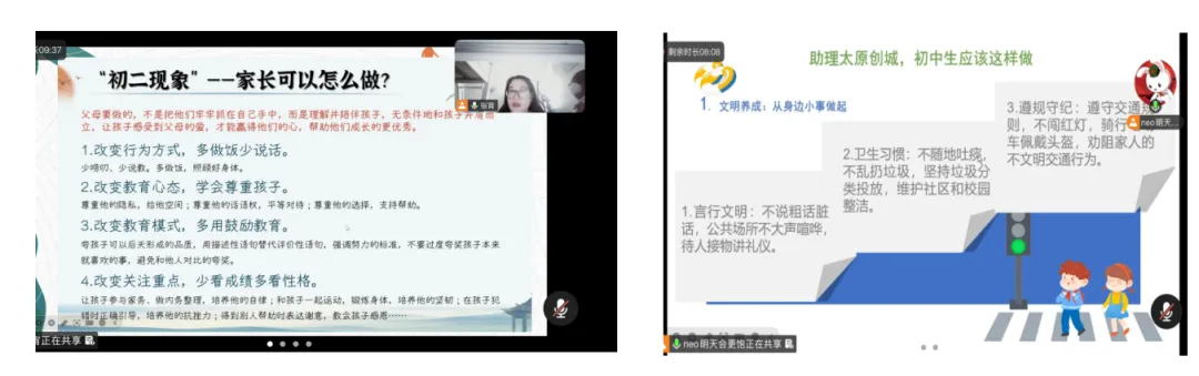 各班立足学生特点,搭建家校沟通桥梁,分享优秀学生家长教育经验,展示班级特色活动成果。针对学生成长需求,向家长提供针对性教育建议,明确家校配合的具体方向与要求,推动形成教育合力,共同助力学生健康成长。