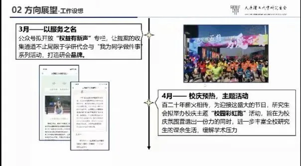 本院研究生会完善了其组织建设,举办了各种学术活动,如国奖交流会、校庆马拉松比赛等文体活动;在未来环境工程学院研究生会将深入宣传服务理念,强化与校研究生会、兄弟学院研究生会的联系,积极配合校庆活动。