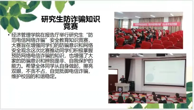 本院研究生会举办了凌云讲坛以及各类文体活动,在国奖获得者事迹报告会等学术讲座中,开展学术经验分享。将理论引领与思想教育相渗透,深入开展社会主义核心价值观教育活动,积极倡导加强研究生的学术道德建设,并将学术探索与文化活动相结合,构建院研本互动式思想政治教育与管理的新模式、新机制,时刻关注主体诉求,做党团组织的助手,做服务工作的有心人。