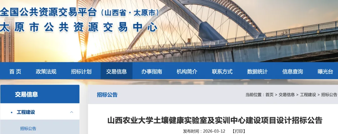 3月12日,全国公共资源交易平台(山西省)发布了《山西农业大学土壤健康实验室及实训中心建设项目设计招标公告》。资金来源:申请中央预算内资金、政府债券和其他投资等多渠道解决项目规模:本项目拟新建一栋土壤健康实验室大楼、一栋实训中心,项目总建筑面积:30135.55平方米,地上建筑面积:21613.92平方米(其中换热站建筑面积489.42平方米),地下建筑面积:8521.63平方米。为实验室购置设备14台(套)。项目总投资23515.80万元,设计计划总投资额约423.11万元。早在2025年9月24日,山西省发改委批复了该项目的可行性研究报告。山西农业大学土壤健康实验室及实训中心是建在龙城校区的省级实验室配套基建项目,集科研、教学、技术转化与社会服务于一体,聚焦土壤健康领域理论创新、技术攻关与人才培养,服务耕地保护与粮食安全战略。对接2024年12月揭牌的土壤健康山西省实验室,由山西农大(省农科院)联合企业共建,学术委员会主任为张佳宝院士,聚焦四大研究方向,实行院士领衔的学术治理体系。该项目的核心用途: