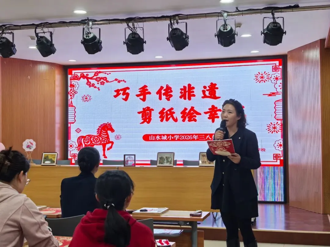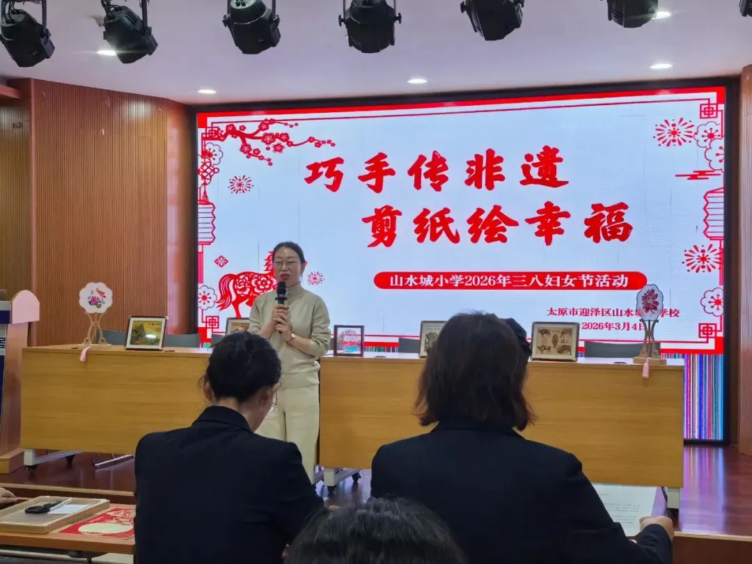 暖春三月,芳华绽放。为庆祝第116个“三八”国际劳动妇女节,传承中华优秀传统文化,3月4日下午,太原市迎泽区山水城小学校工会精心举办“巧手传非遗 剪纸绘幸福”非遗剪纸主题活动,全体教职工齐聚一堂,在指尖非遗中感受传统之美,共庆温馨节日。