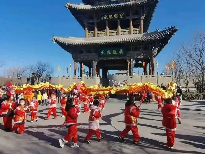 一曰龙天庙会,岁时三祭。省级非遗,循“二月二祭龙、七月初五迎龙、九月十五谢龙”之制。届期,旗伞鼓乐,神像巡游,社火、架火、旱船、龙灯毕陈,商贾云集,士女填街,祈风调雨顺、国泰民安,实报文帝免租赐复之恩。