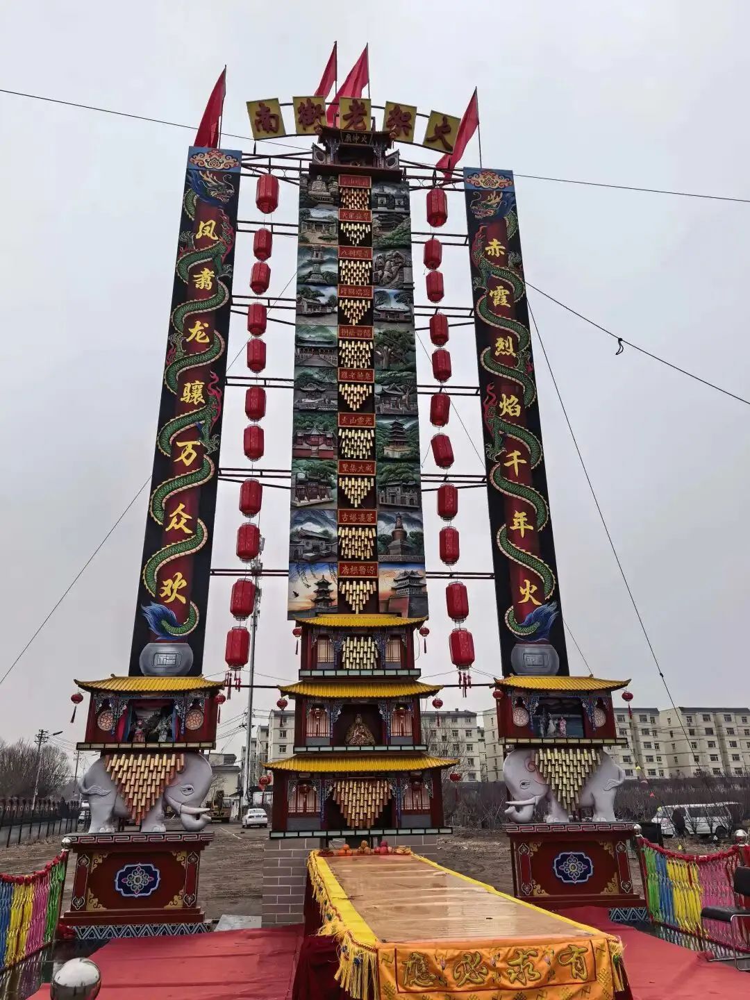 二曰二月二架火,千年不替。南街老架火,明以降承传,燃火祀龙,祝岁丰稔,民谓“文帝为龙,火以迎灵”,灯火彻宵,喧阗百里。