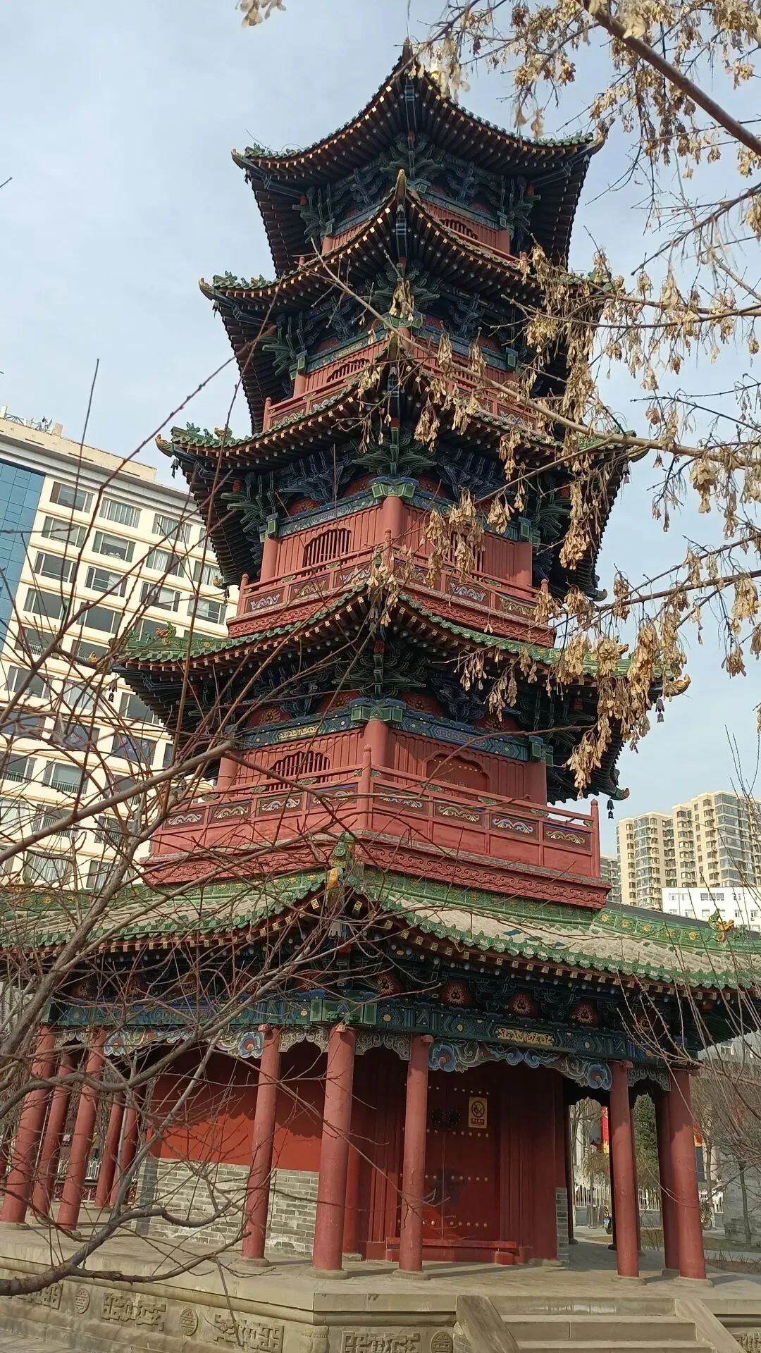 塔和休憩长廊建于寺庙围墙外,为市民和游人提供了休闲的场所,每当暖阳光顾,这里常常围坐着各色民众,成为街边一景。这种布局,将城市的喧闹与寺庙的幽静分割开来,是古建保护和市井烟火共融的巧妙设计。