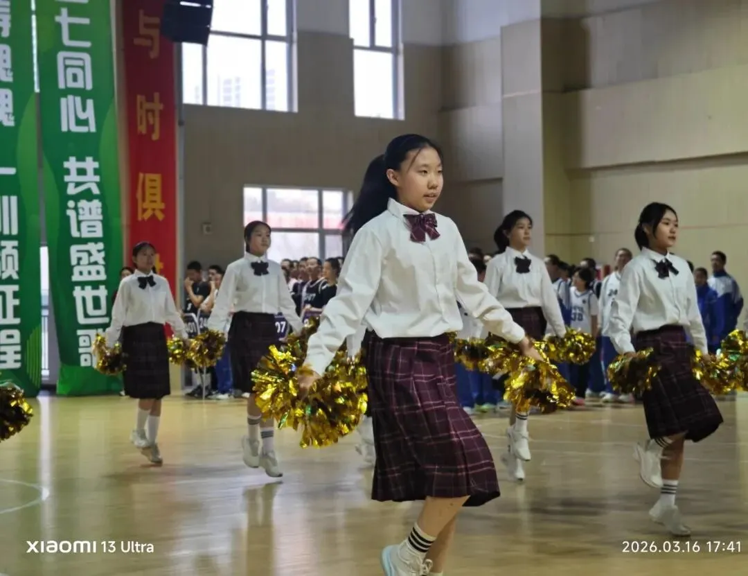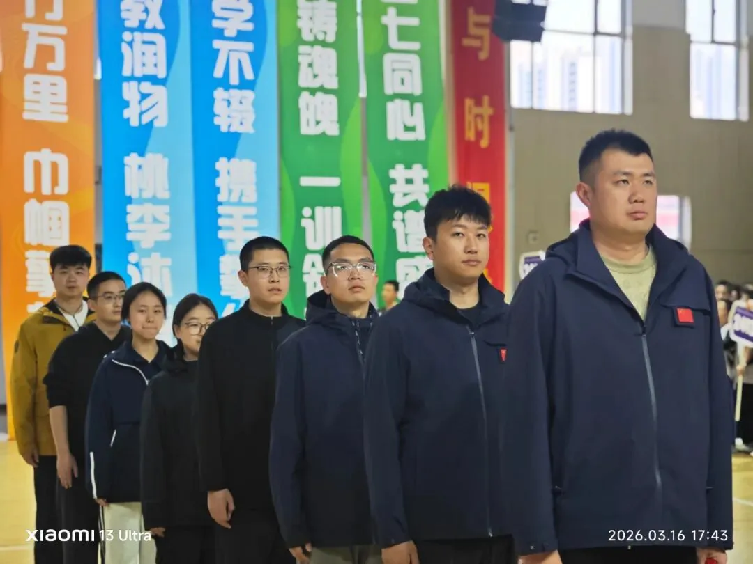 五星红旗冉冉升起,雄壮的国歌响彻校园。全体师生肃立行礼,嘹亮歌声中,家国情怀融入每个人的血脉,“胸怀祖国,放眼世界”的校训化作坚定信念,让少年们深知,赛场上的每一次拼搏都是成长蓄力,每一份坚守皆是家国担当。