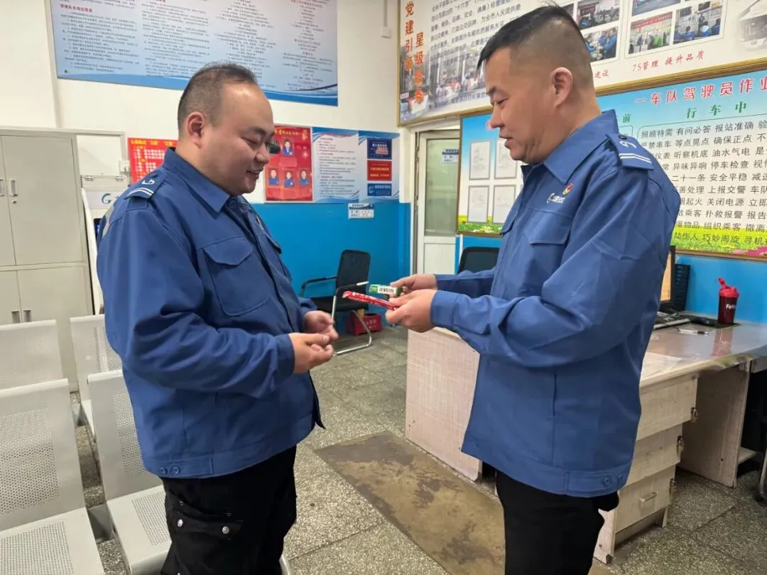 在车队调度站内,车队队长张启林将提前准备好的风油精、咖啡包等防困提神物资逐一发放到每一位在岗驾驶员手中。风油精清凉提神,能有效驱散困倦;咖啡包醇香浓郁,帮助驾驶员唤醒精神,小小物品,承载着车队对一线职工的关心与牵挂,让驾驶员在运营途中时刻保持清醒状态。接过物资,驾驶员们脸上露出了暖心的笑容,大家纷纷表示,车队的贴心物品非常及时,不仅能提神醒脑,更让大家感受到了来自集体的关怀与温暖,在接下来的运营工作中,一定会时刻保持清醒,安全平稳驾驶。
