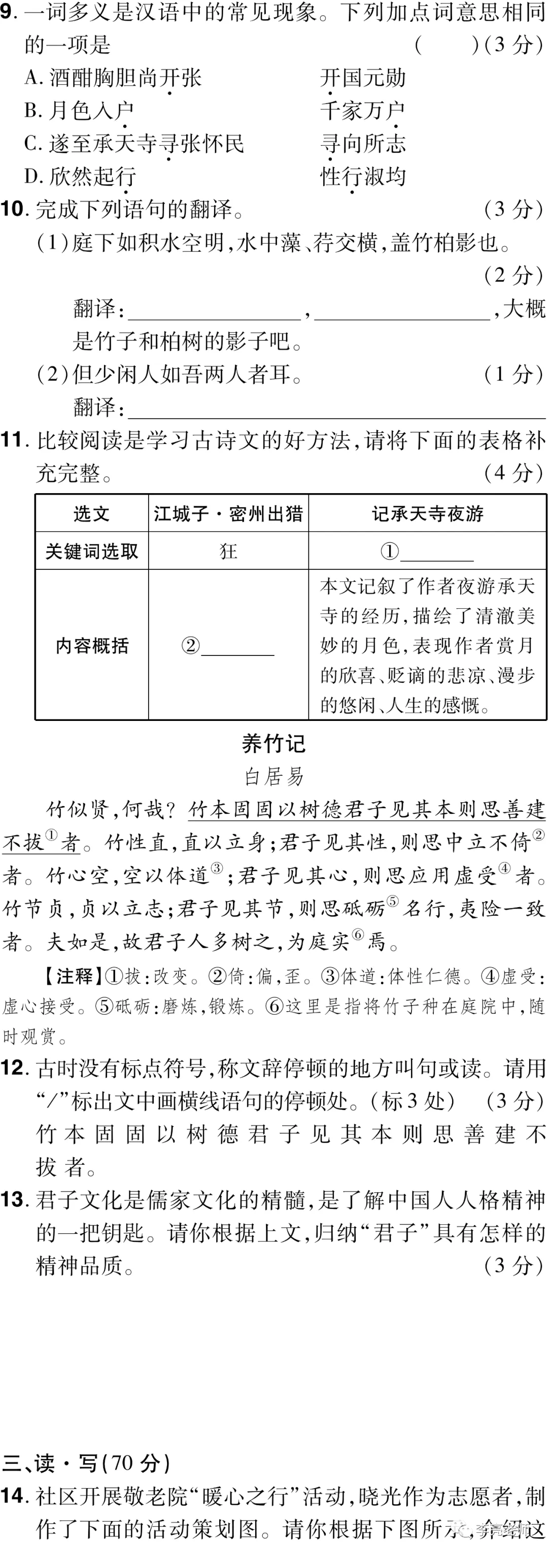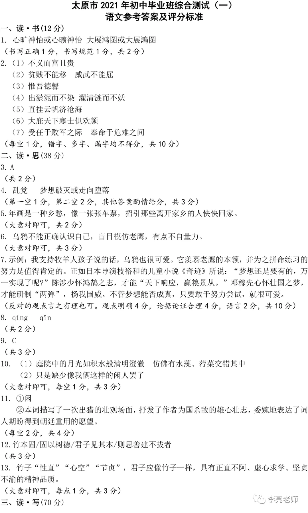 太原市2021年初中毕业班综合测试(一)【语文】试卷+答案