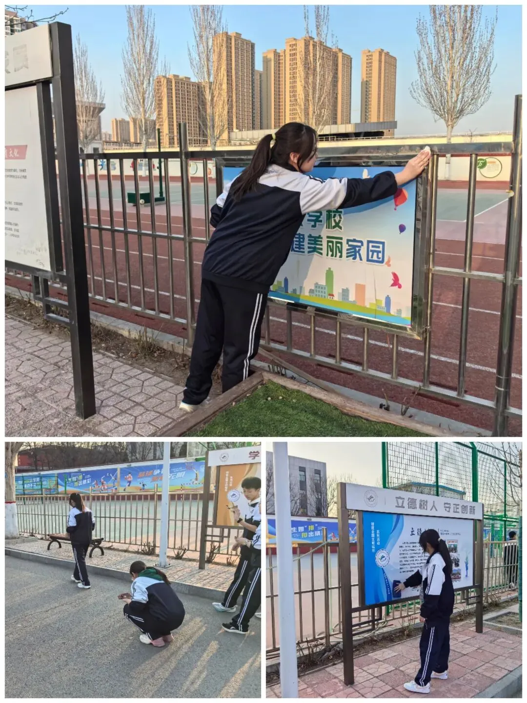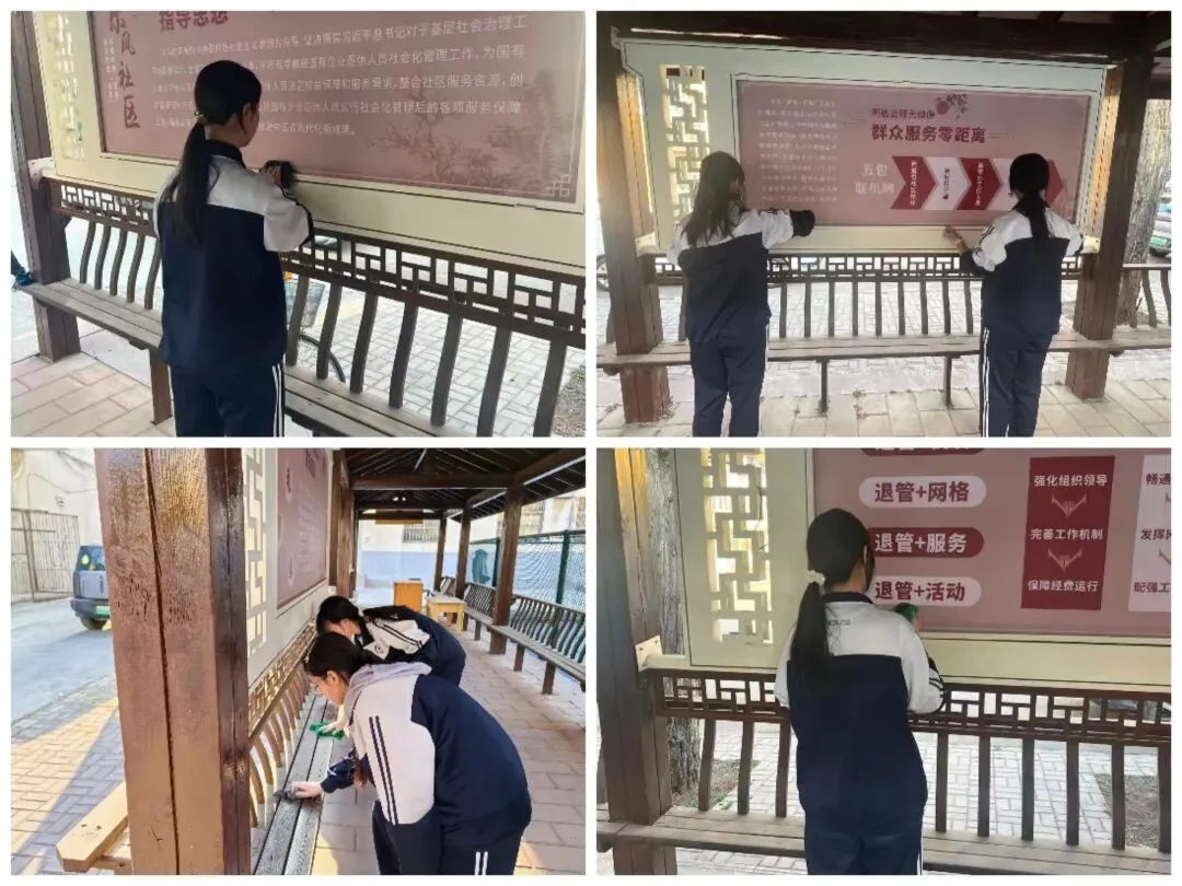 擦拭宣传栏,擦亮文明窗口:社区宣传栏是传递政策信息、弘扬文明新风、展示社区形象的重要窗口。志愿者们自带抹布、水桶,认真擦拭每一块宣传栏玻璃,细致清理边框积尘和污渍。经过细心擦拭,宣传栏变得明亮如新,社会主义核心价值观、垃圾分类知识、社区活动通知等内容清晰醒目,成为社区内一道传递文明、彰显温度的亮丽风景线。