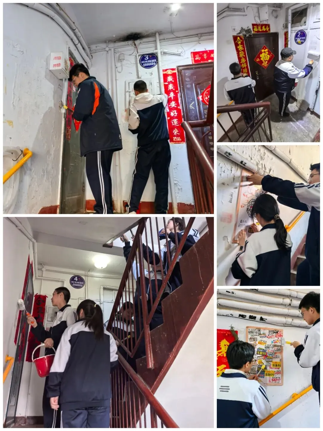 清扫社区走廊,畅通居民回家路:志愿者们拿起扫帚、簸箕,对社区主干道、走廊、单元门口进行全面清扫。大家仔细清理地面烟头、纸屑、塑料袋等杂物,不放过任何一个卫生死角。干净整洁的走廊、畅通有序的路面,让居民回家的脚步更加舒心,也让文明之风浸润社区的每一个角落。