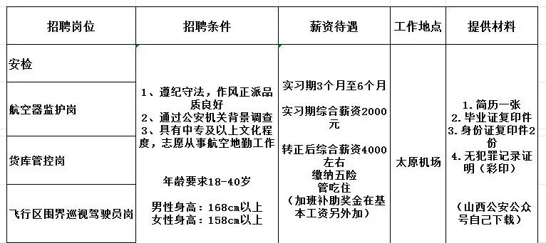 3、符合山西省民航机场公司入职体检标准。