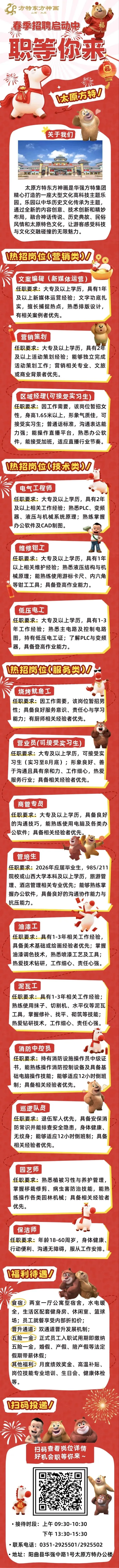 太原方特作为正规大型文旅企业,用工规范、福利完善,涵盖运营、服务、技术、管理、演艺、后勤等多类岗位,面向社会广纳英才,为员工提供稳定的职业平台与清晰的成长路径💼。