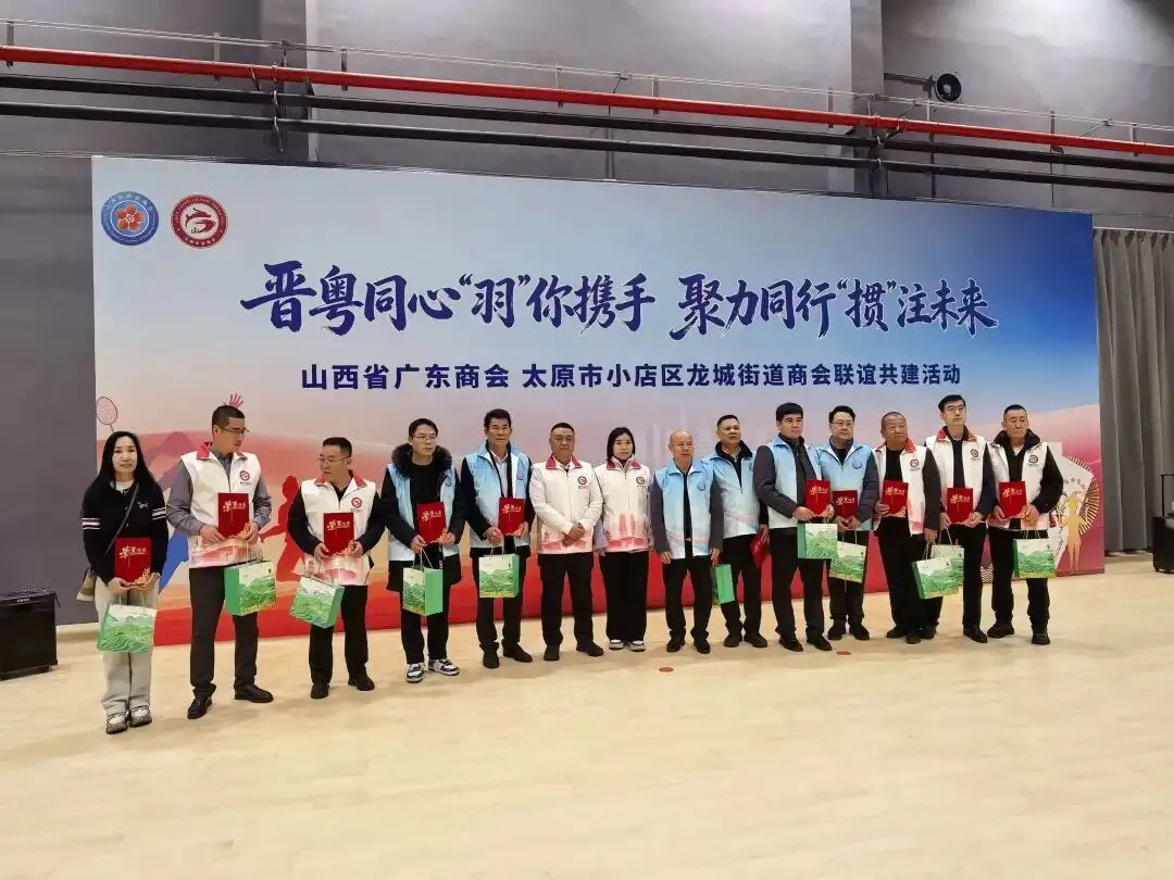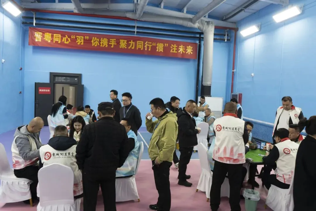 2026年3月14日下午,由我会第一季度轮值会长张腾蛟,轮值副会长许彩植、郭金虎共同轮值的“晋粤同心‘羽’你携手 聚力同行‘掼’注未来”主题联谊共建活动,在龙城全民健身中心顺利举行。本次活动由我会与太原市小店区龙城街道商会携手,以羽毛球、掼蛋友谊赛为交流载体,为两家商会成员搭建起了互动链接的友谊桥梁。龙城街道人大工委主任杨楠受邀出席本次活动。