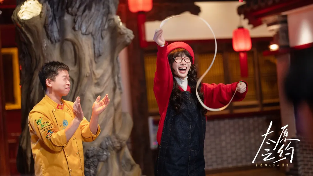 从红灯笼体育场的热烈欢呼到钟楼街的烟火日常,从天龙山石窟的千年静美到汾河畔的现代风貌,从热气腾腾的头脑、羊杂割到行云流水的面食表演……剧中每一个场景都是太原的真实写照。城市地标、文旅元素贯穿短剧始终,让观众在沉浸故事的同时,看得见历史、尝得到美味,感受太原的风土人情。