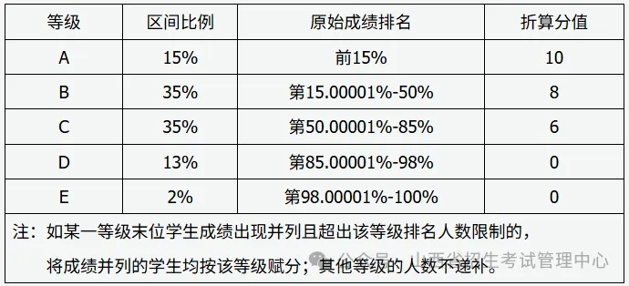 (2)再选科目等级评价的比例及折算分: