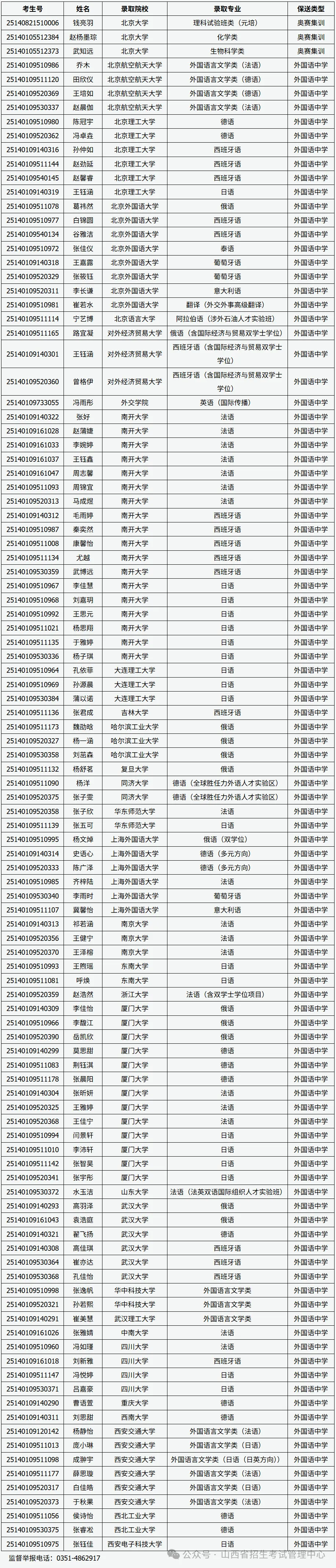 (一)按上述办法确定后的拟推荐保送生名单在全校公示后报山西省招生考试管理中心和教育部“阳光高考”平台公示。公示后,具有推荐保送资格的学生放弃保送资格,不再增补。