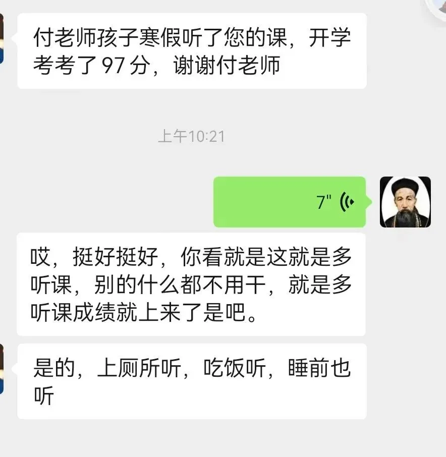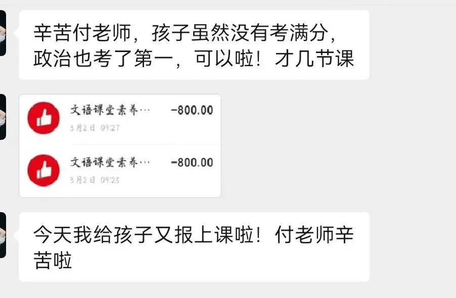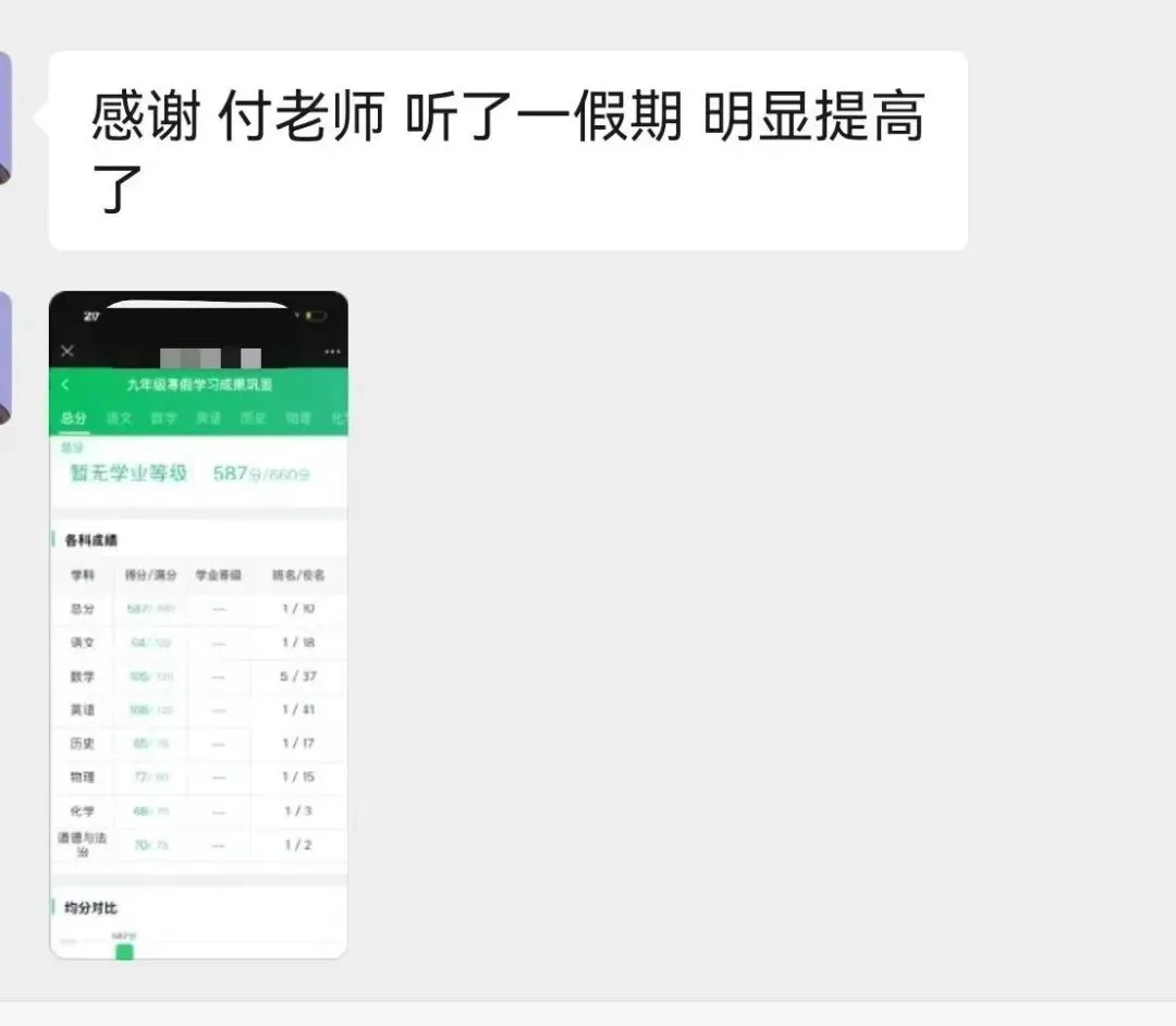 “假期报了两个班,孩子每天最开心的就是听付老师讲课!现在上语文课彻底开窍,终于有文科思维了!”