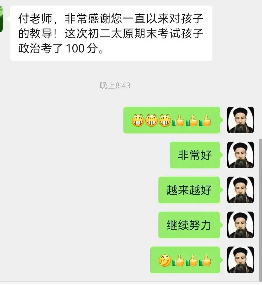 最近付老师的私信被太原家长们的感谢与喜报“轰炸”了!