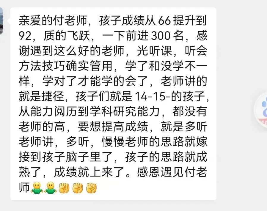 “孩子成绩从66分提到92分,前进300名!听会方法技巧真的管用,老师讲的就是捷径,思路一嫁接,成绩直接上来!”