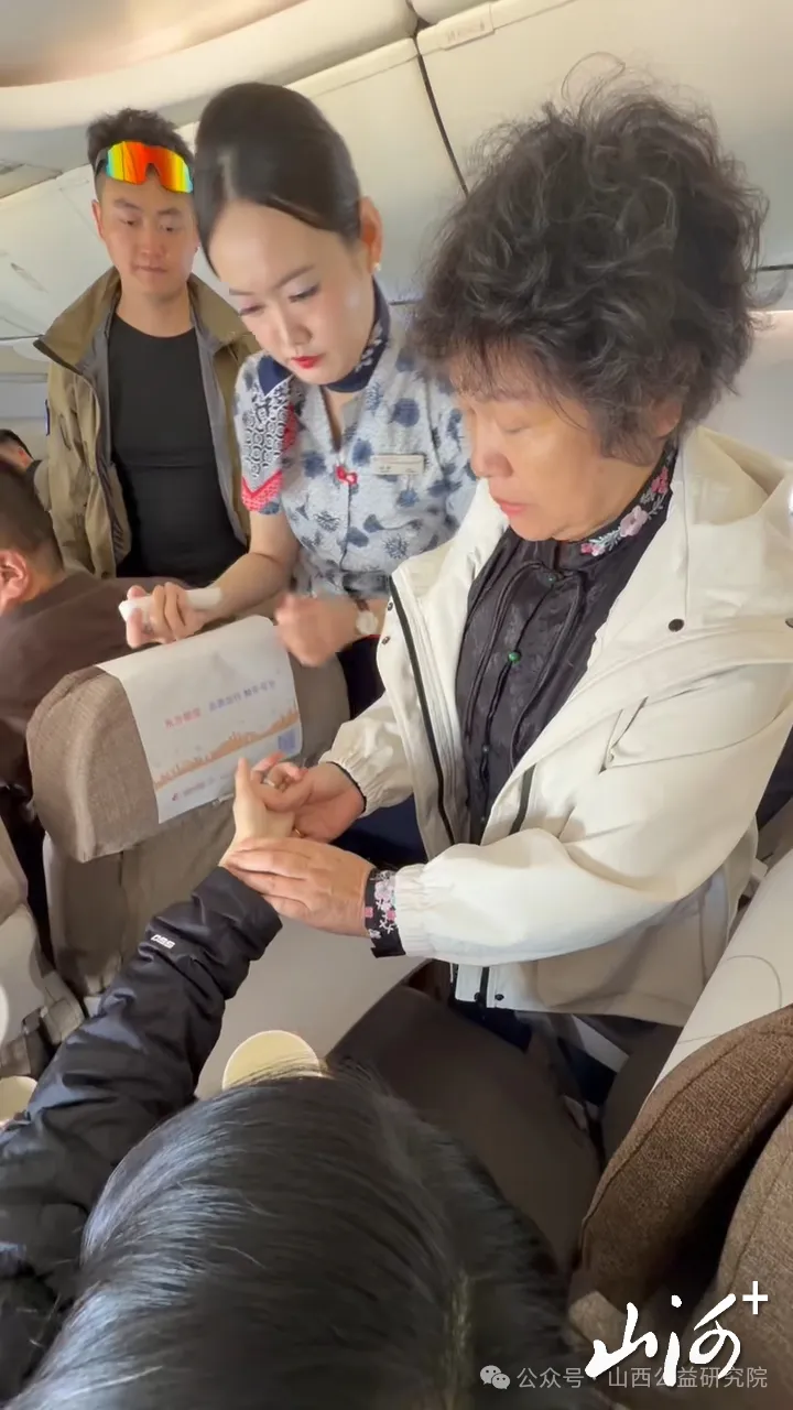 “各位旅客,请问机上有谁是医生?有位乘客需要急救!”广播声在客舱内响起。此时,坐在后排的王艳平听到后,毫不犹豫地起身走上前。