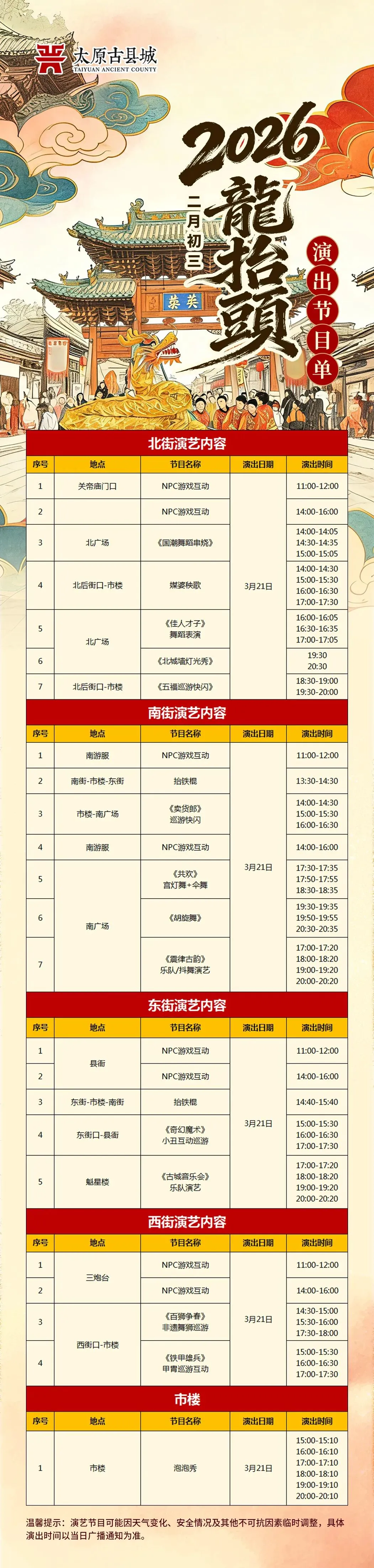 ✅ 活动主题:龙腾晋阳·凤舞古城——太原古县城2026年二月二民俗文化互动活动