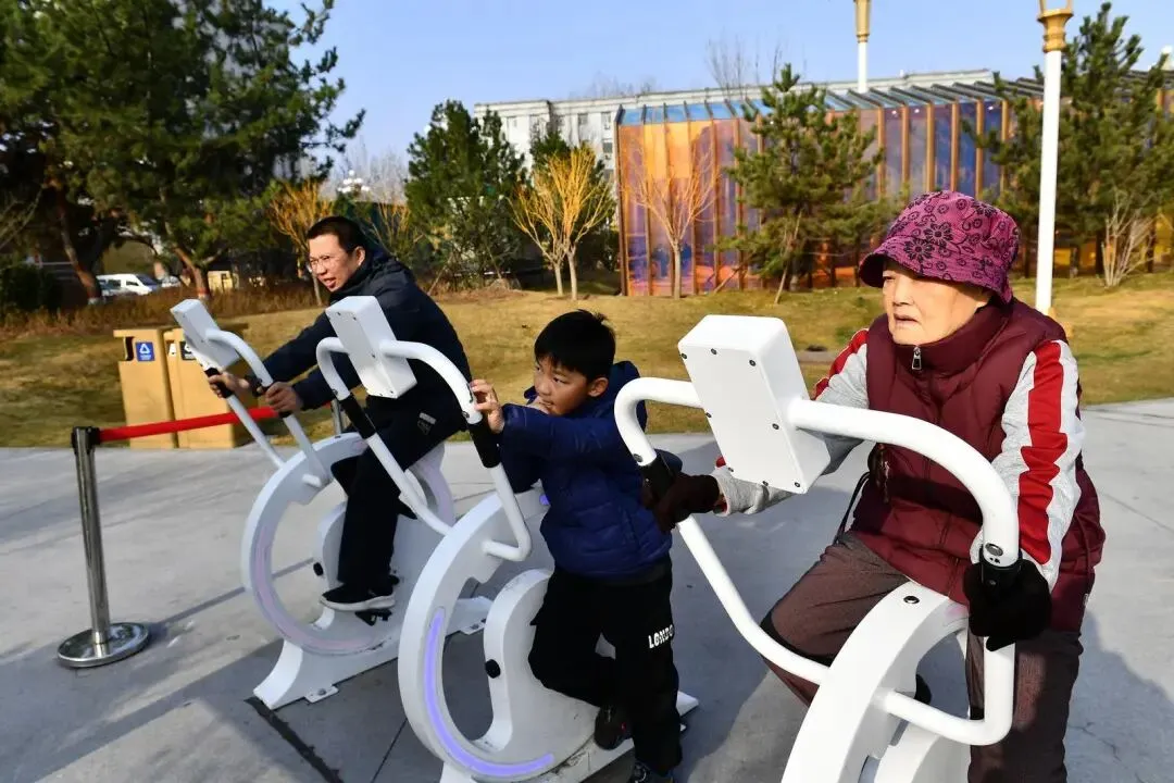“跑酷、骑行、划船,虚拟场景+实景运动,科技感十足带来健身乐趣。”3月15日,太原市水系公园,市民用刚建成的AI互动健身系统健身锻炼。