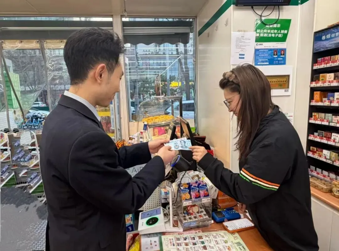 “任何单位和个人不得拒收人民币现金”“不宜流通的人民币纸币有12种,大家可到银行进行兑换……”化身“金融宣讲员”的青年志愿者们走进商户开展人民币知识宣传活动,精准解决商户经营中的实际问题。