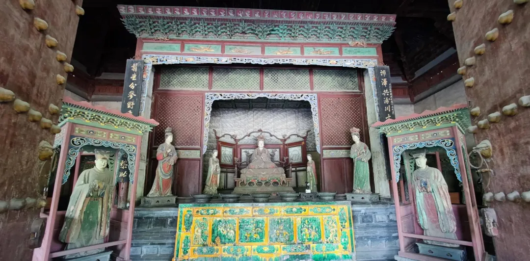 站在圣母殿前,看着那些历经近千年风雨却依然傲然挺立的宋代木构建筑,看着木柱上那几条盘旋而上、仿佛随时要腾云驾雾的木雕盘龙,你会感受到一种令人窒息的东方美学张力。殿内那43尊宋代彩塑侍女,没有千篇一律的泥塑感,她们有的蹙眉,有的含笑,有的仿佛在低声细语,衣袂飘飘,栩栩如生。那一刻,你面对的不是文物,而是一个个鲜活的、从宋代穿越而来的灵魂。