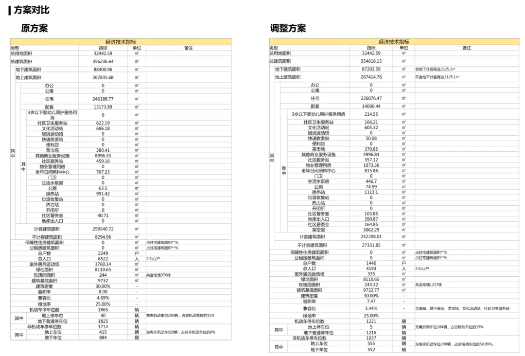 从两个维度看,一是住宅面积从24.6万降低到22.6万,不计容面积从0.8万方增长到2.4万方,地块容积率下调0.5,其次商业兼容从4.7%降至3.4%!